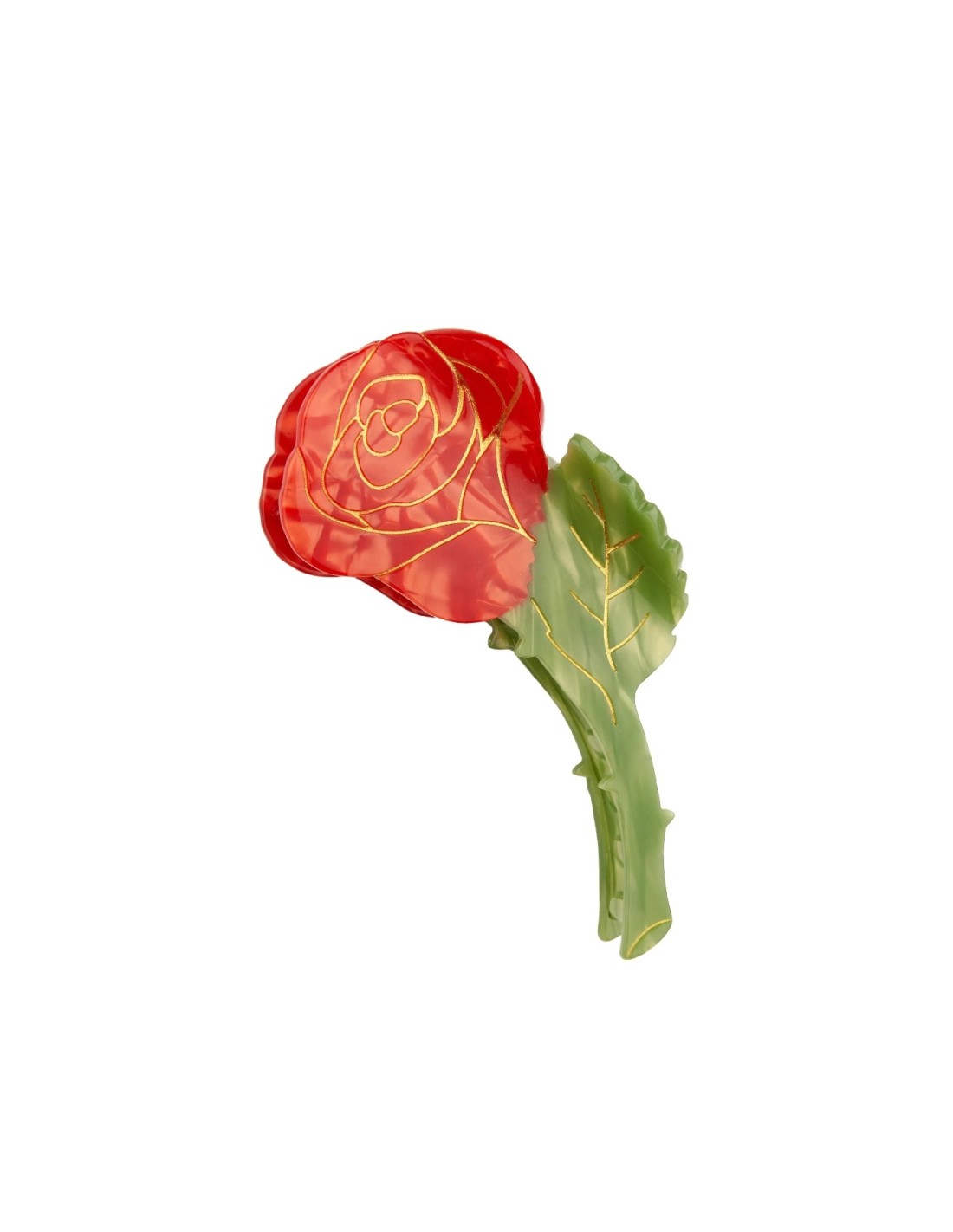 Dans la famille des fleurs, nous demandons la rose ! Une magnifique pince à cheveux en forme de rose fraîchement cueillie, avec ses épines et ses pétales rouge intense. Un vrai bijou qui ressort sur toutes les chevelures et qui fait un bien beau cadeau pour la Saint-Valentin !