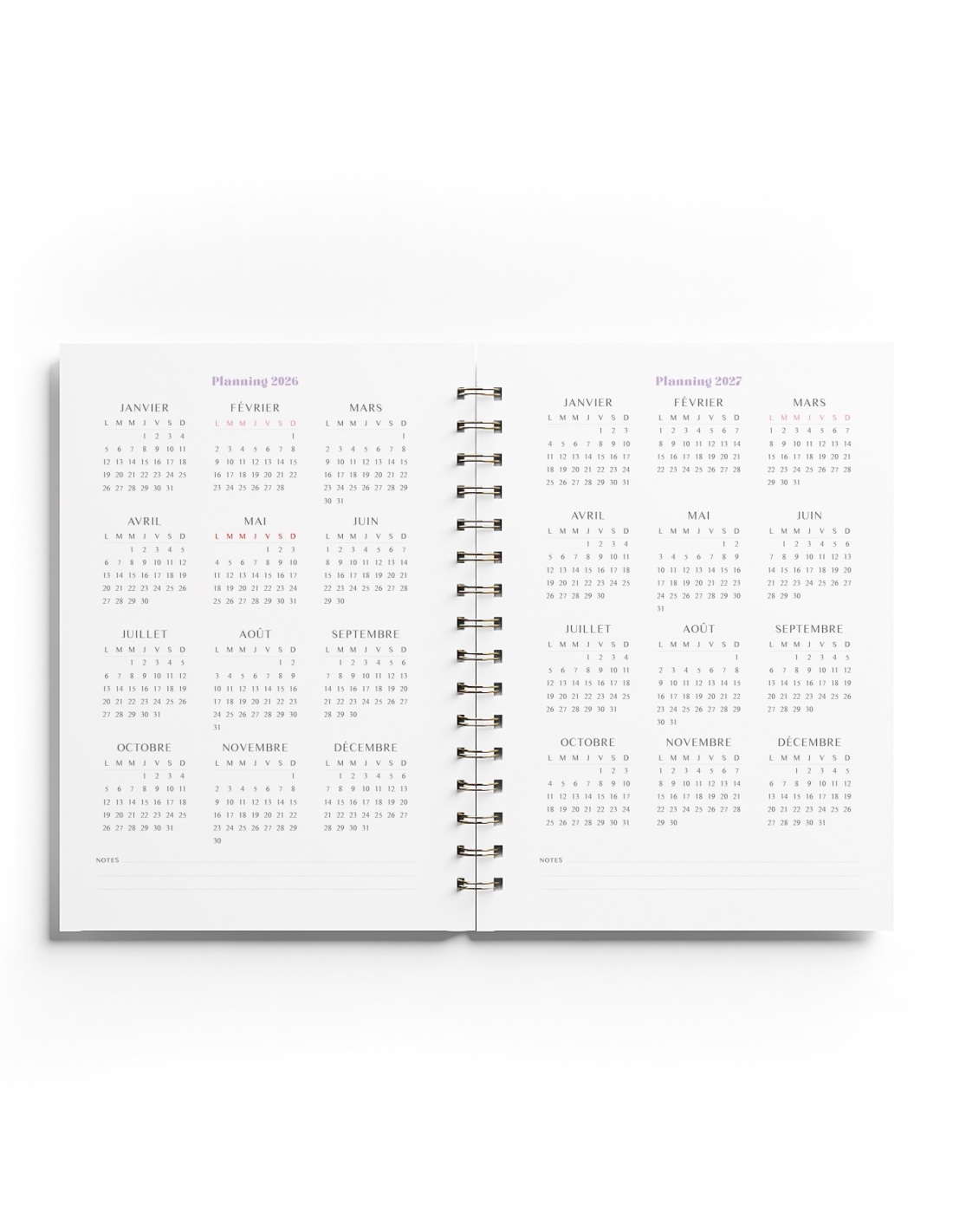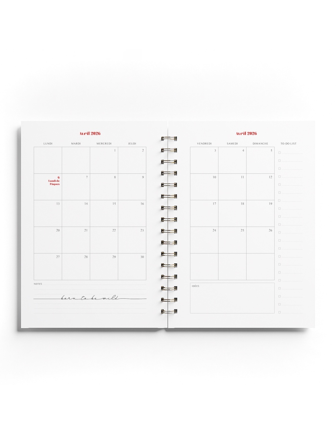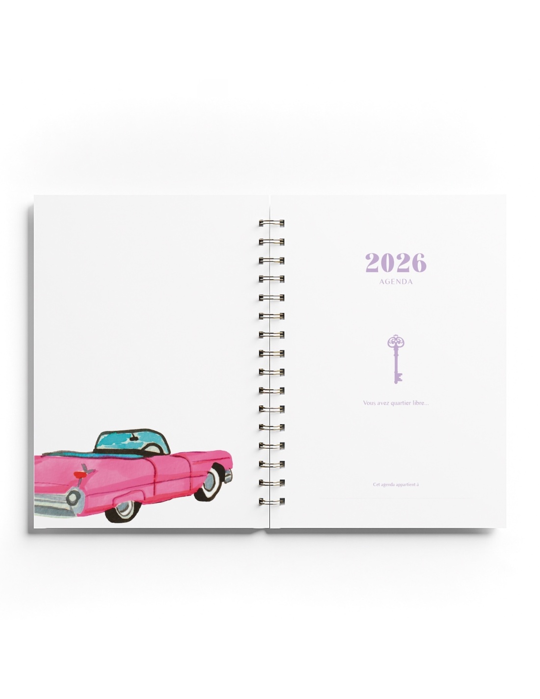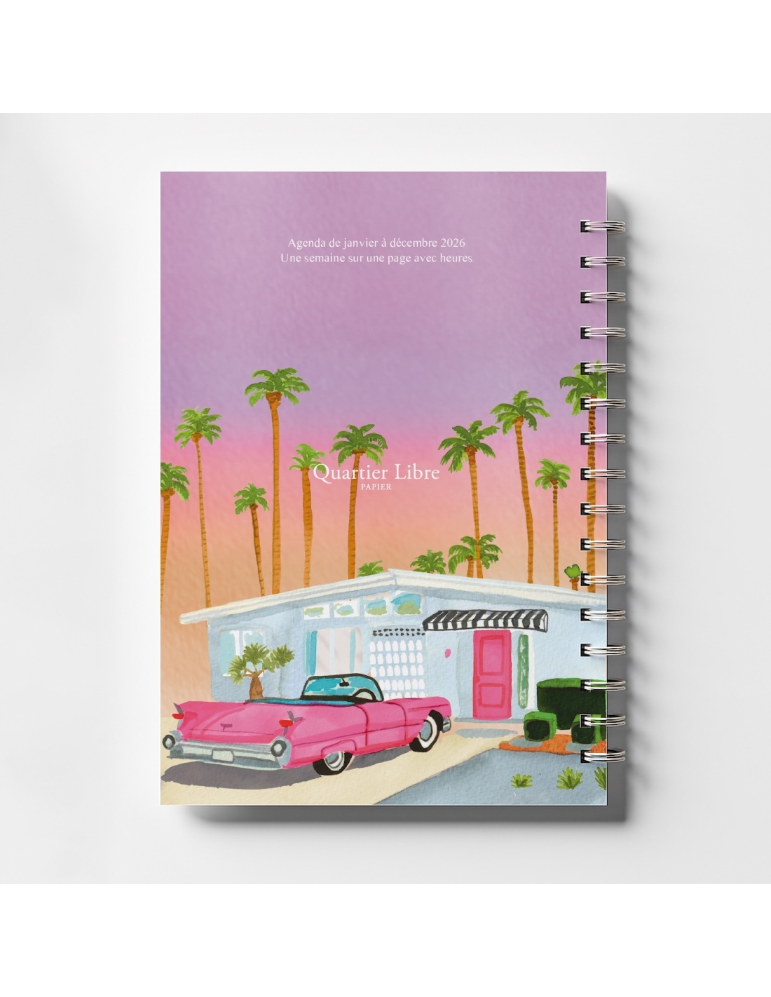 Agenda QUARTIER LIBRE PAPIER, format A5 à spirale, de janvier à décembre 2026, semaine sur deux pages + planning mensuel en début de mois (plus d'infos en bas de page)