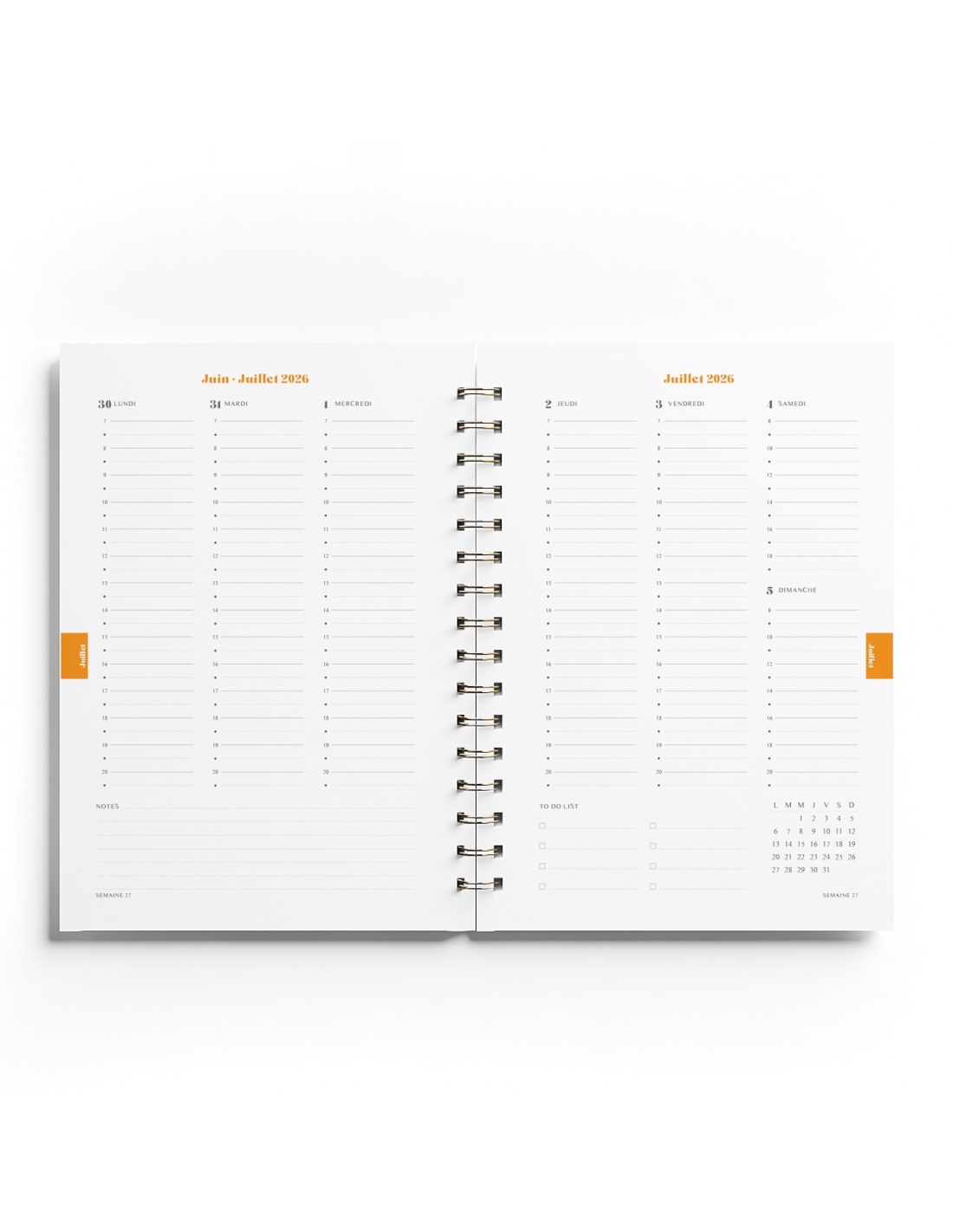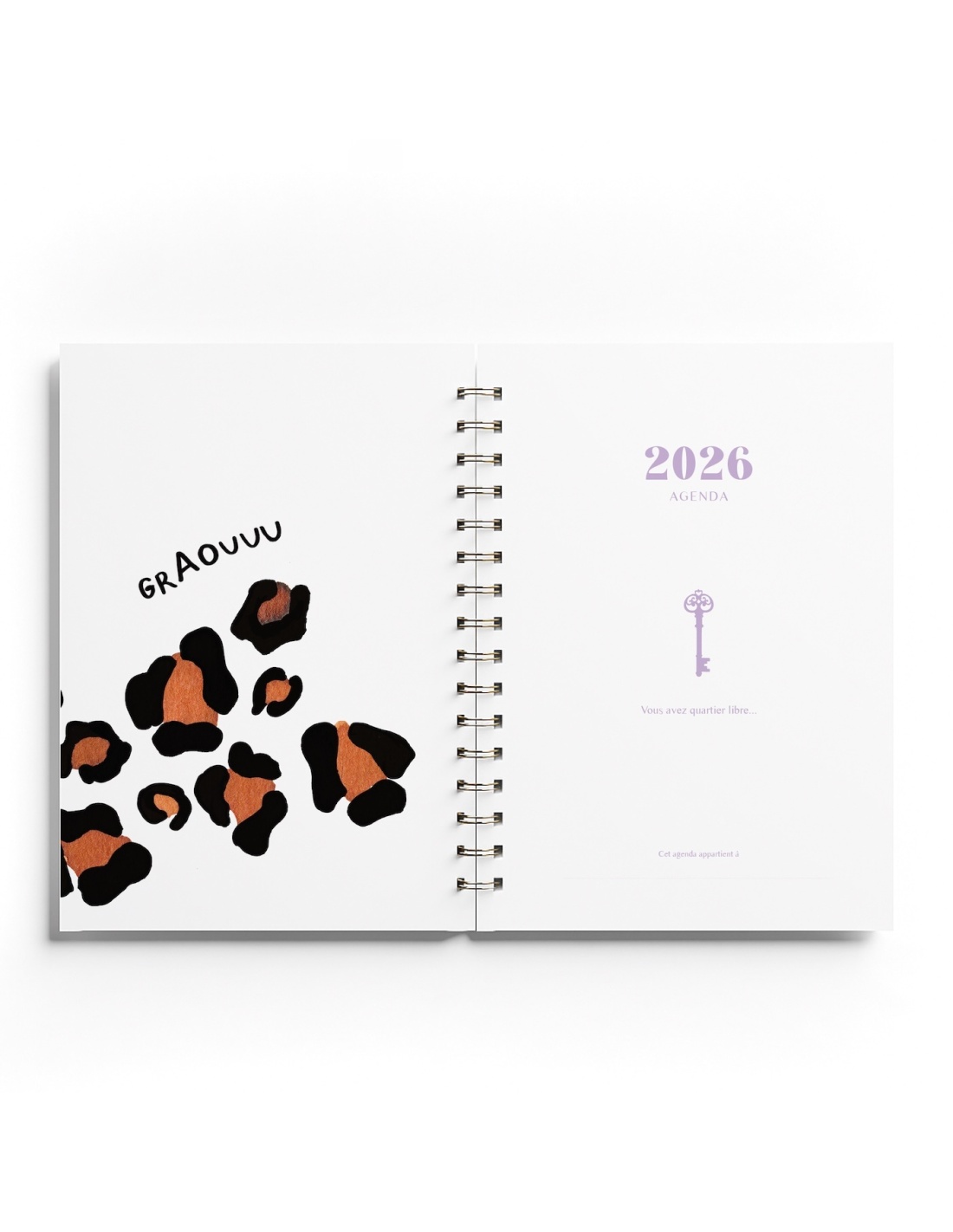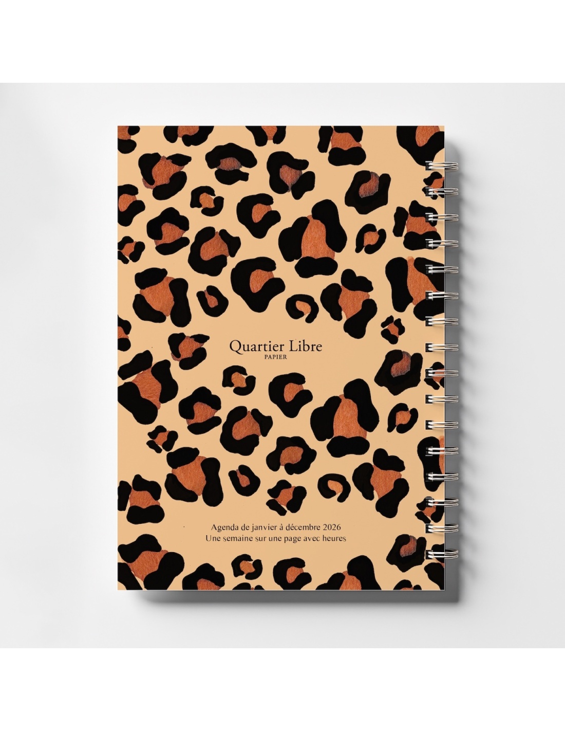 Agenda QUARTIER LIBRE PAPIER, format A5 à spirale, de janvier à décembre 2026, semaine sur deux pages + planning mensuel en début de mois (plus d'infos en bas de page)