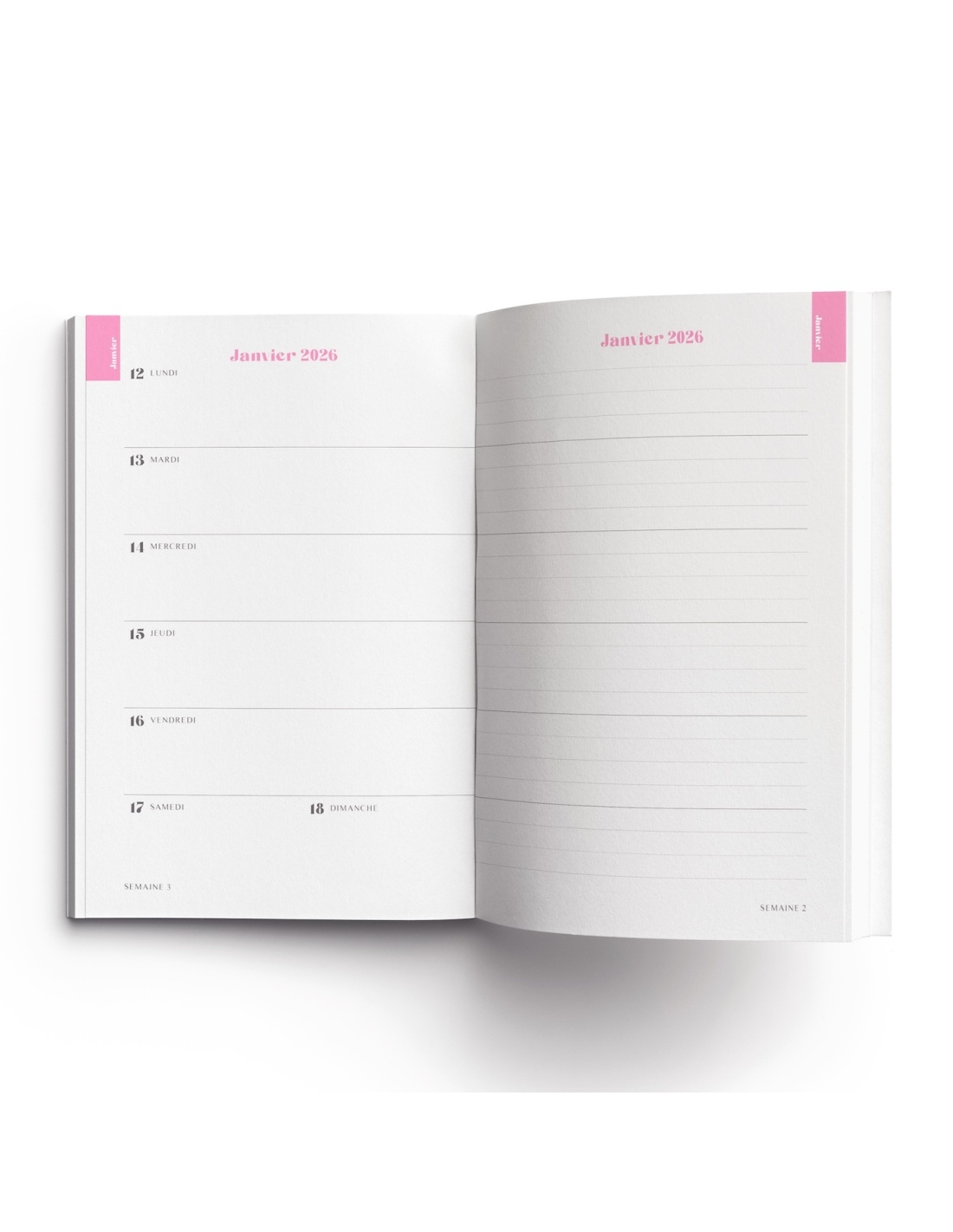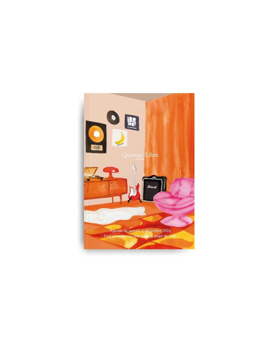 Agenda QUARTIER LIBRE PAPIER, format A6, de janvier à décembre 2026, semaine sur une pages + page de note (plus d'infos en bas de page)