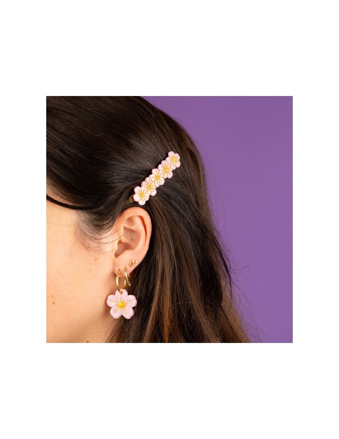 Difficile de résister à l’envie de mettre des fleurs dans ses cheveux avec l’arrivée des beaux jours ! Parez-vous de cette barrette Pensée mauve à jolies feuilles dentelées vertes pour crâner au prochain pique-nique champêtre !