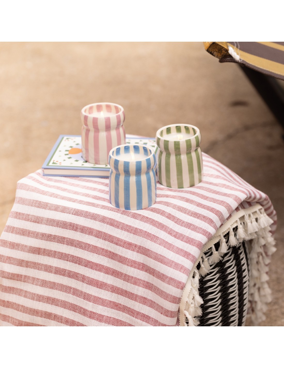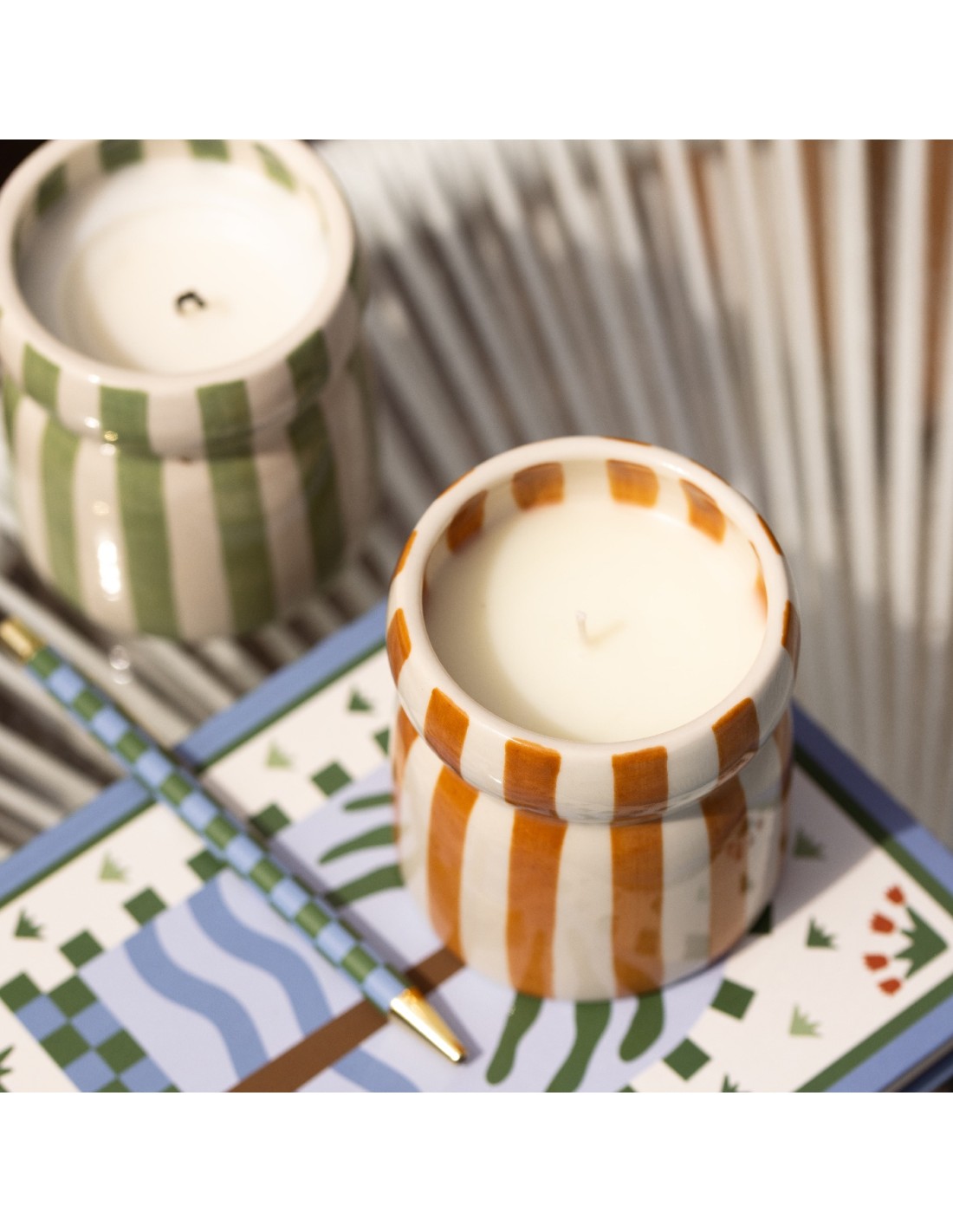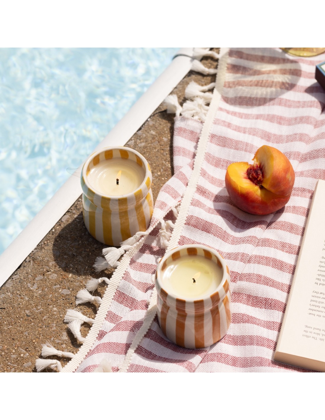 Evadez-vous sur les plus belles plages du monde avec la collection Cabana de Paddywax, conçue pour évoquer les senteurs apaisantes et transformatrices des destinations côtières. Ces bougies peintes à la main, inspirées des parasols rayés, pèsent 195 g et ont une forme unique.