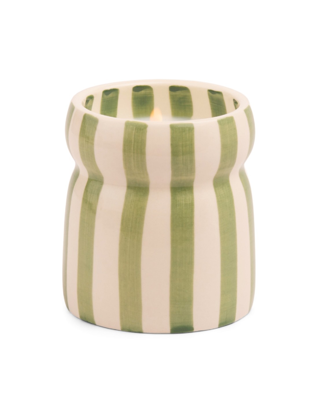 Evadez-vous sur les plus belles plages du monde avec la collection Cabana de Paddywax, conçue pour évoquer les senteurs apaisantes et transformatrices des destinations côtières. Ces bougies peintes à la main, inspirées des parasols rayés, pèsent 195 g et ont une forme unique.