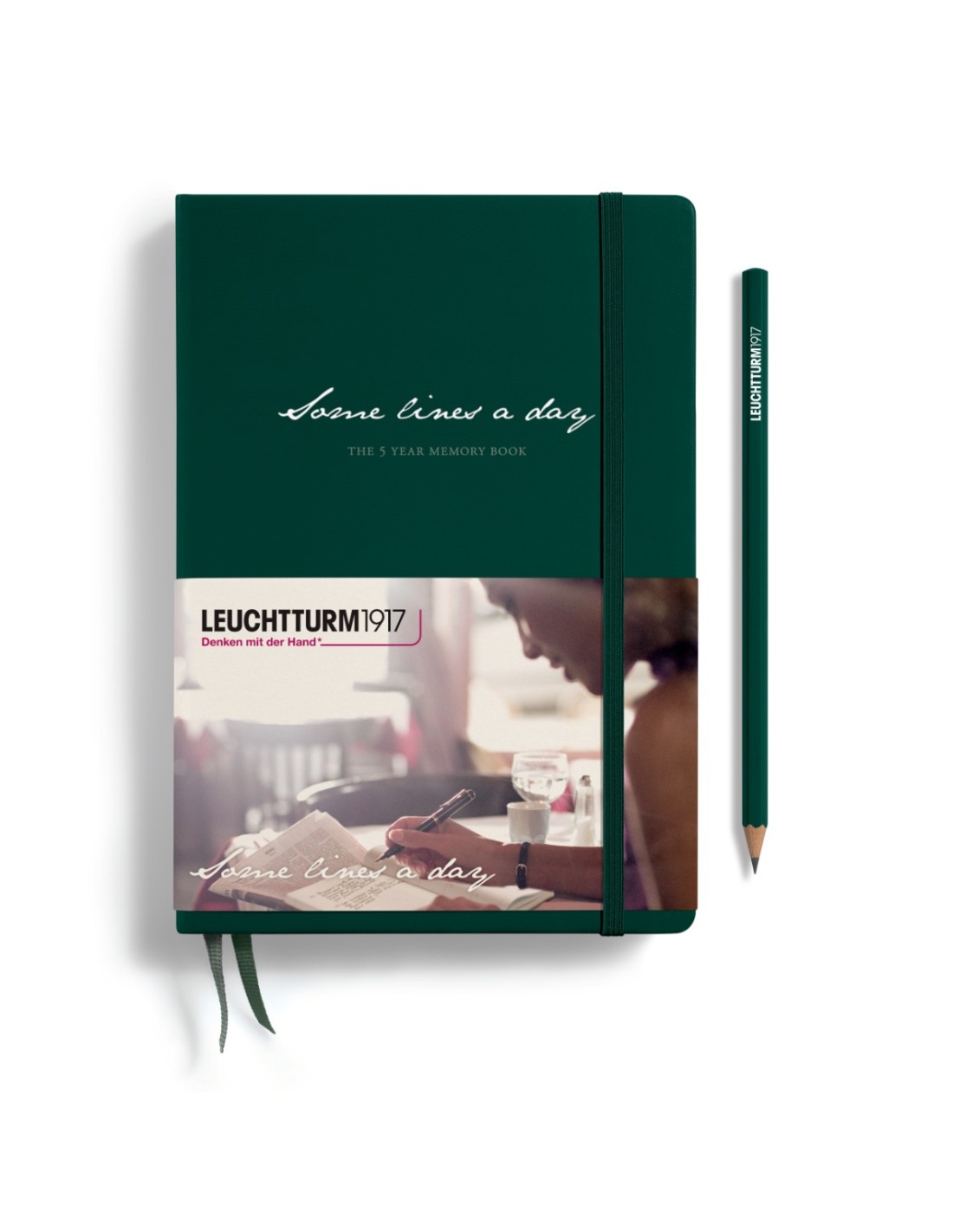 Journal LEUCHTTURM1917 sur 5 ans, couverture rigide en moleskine, présentation hebdomadaire avec cinq entrées pour le même jour civil sur chaque page (plus d'infos en bas de page)