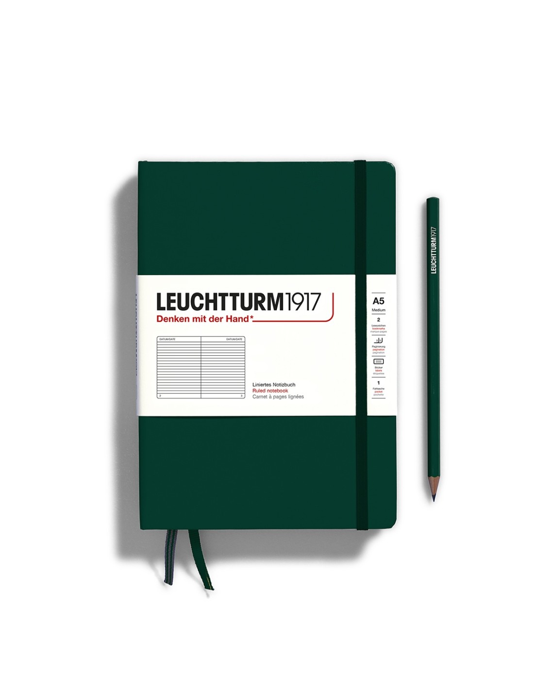 Cahier LEUCHTTURM1917 à couverture rigide en moleskine, format A5, 251 pages lignées (plus d'infos en bas de page)