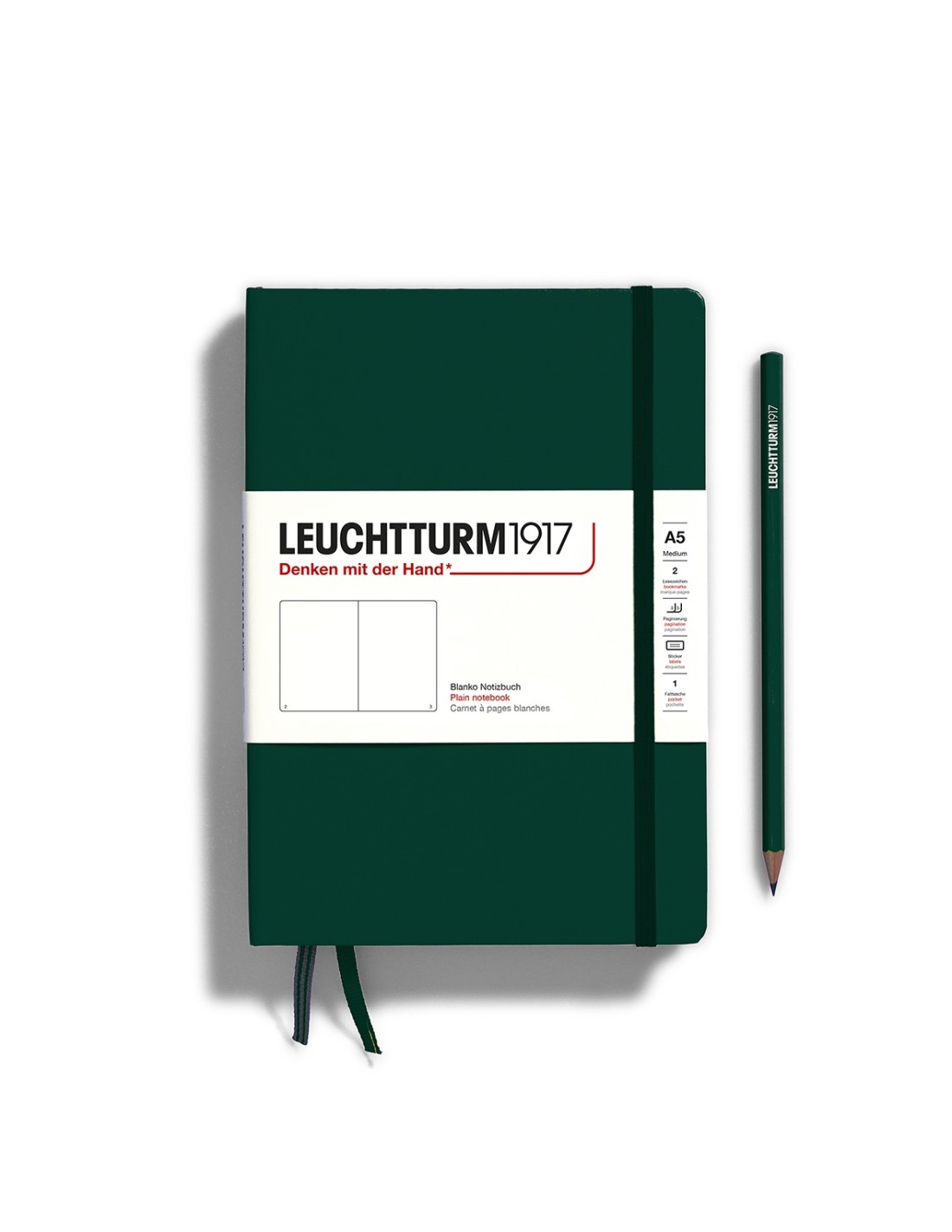 Cahier LEUCHTTURM1917 à couverture rigide en moleskine, format A5, 251 pages unies (plus d'infos en bas de page)