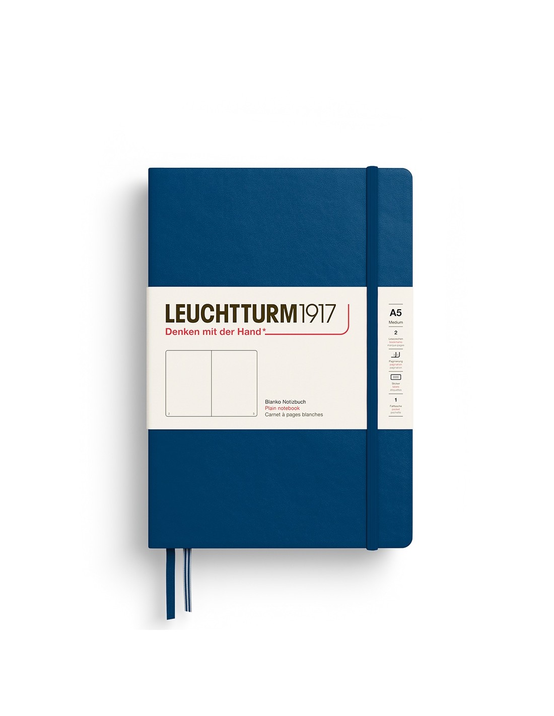 Cahier LEUCHTTURM1917 à couverture rigide en moleskine, format A5, 251 pages unies (plus d'infos en bas de page)