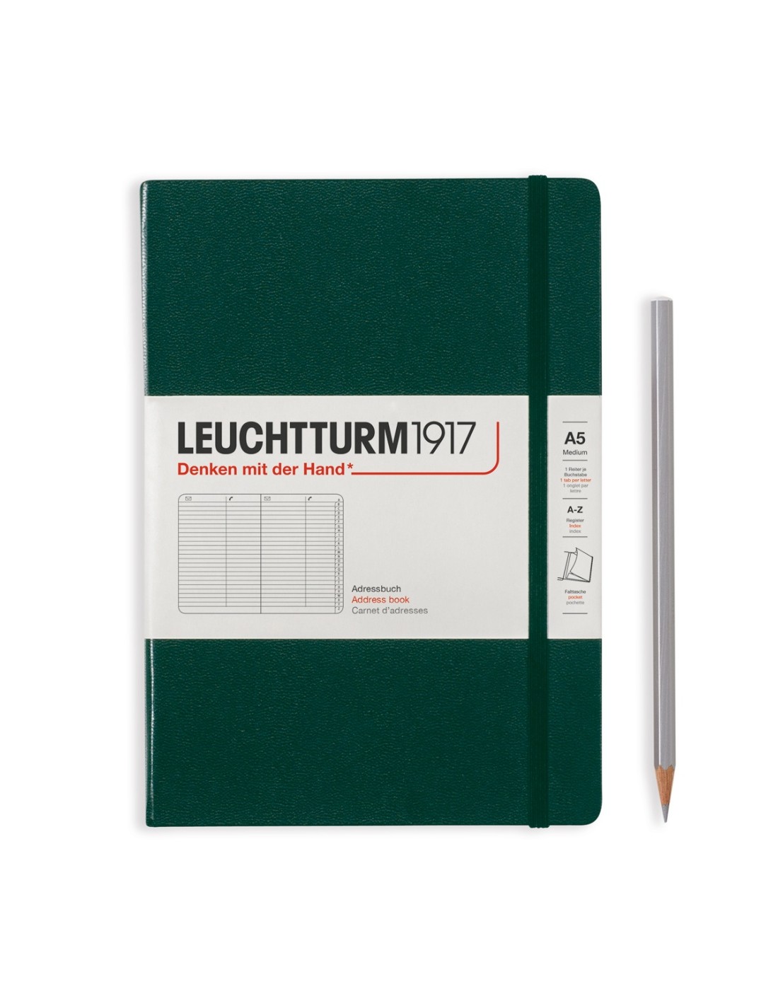 Carnet d'adresses LEUCHTTURM1917 à couverture rigide en moleskine, format Medium A5, A-Z 4 pages par lettre (plus d'infos en bas de page)