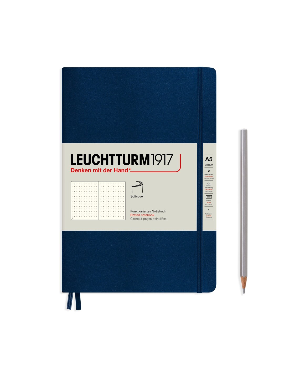 Cahier LEUCHTTURM1917 à couverture souple en moleskine, format B5, 123 pages avec réglure pointillées, idéal pour un Bullet Journal (plus d'infos en bas de page)