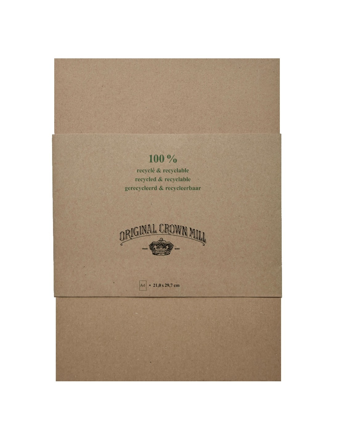 Feuille en papier 100% recyclé ORIGINAL CROWN MILL, format A4 21 x 29,7 cm, disponible en 2 grammages, fabriqué en Belgique (plus d'infos en bas de page)