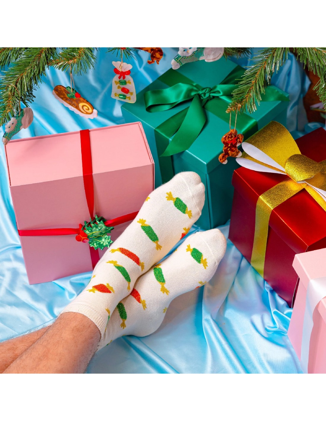 De la couleur, des motifs rigolos, des scènettes de vie quotidienne à porter au coin du feu, des animaux trop mignons pour aller crâner au parc, des femmes libres et fières d’elles qui dansent nues, des nichons à gogo, des petites fesses qui ont un peu abusé du soleil… Amusez-vous avec vos chaussettes !