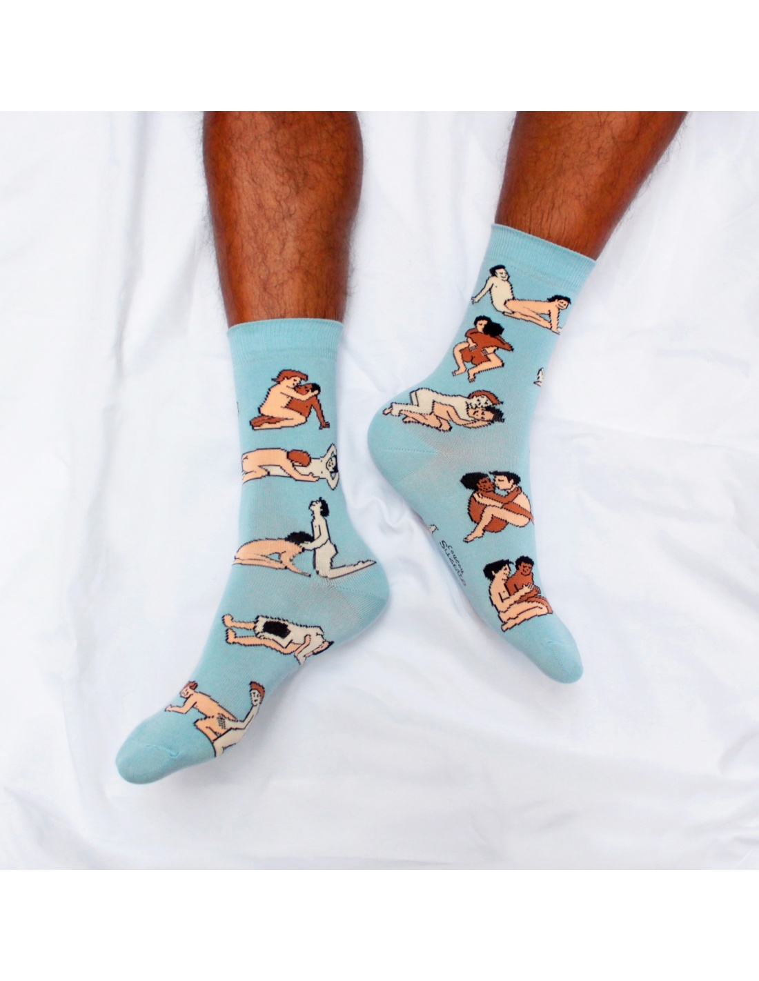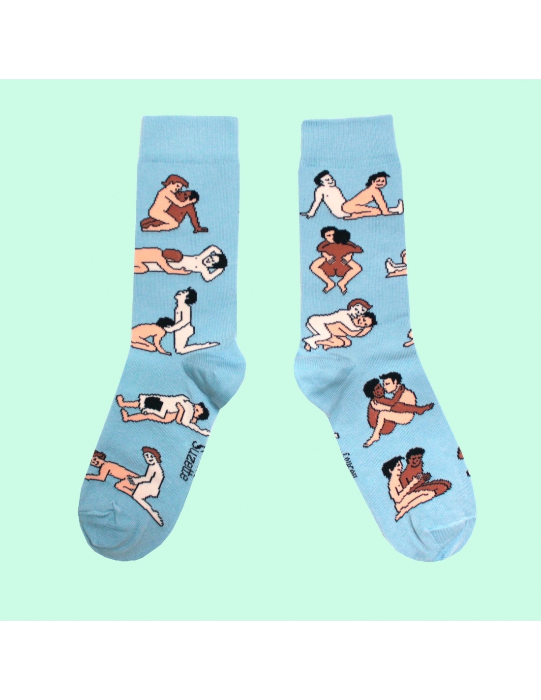 De la couleur, des motifs rigolos, des scènettes de vie quotidienne à porter au coin du feu, des animaux trop mignons pour aller crâner au parc, des femmes libres et fières d’elles qui dansent nues, des nichons à gogo, des petites fesses qui ont un peu abusé du soleil… Amusez-vous avec vos chaussettes !