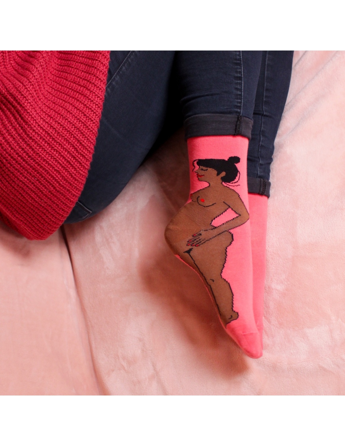 De la couleur, des motifs rigolos, des scènettes de vie quotidienne à porter au coin du feu, des animaux trop mignons pour aller crâner au parc, des femmes libres et fières d’elles qui dansent nues, des nichons à gogo, des petites fesses qui ont un peu abusé du soleil… Amusez-vous avec vos chaussettes !