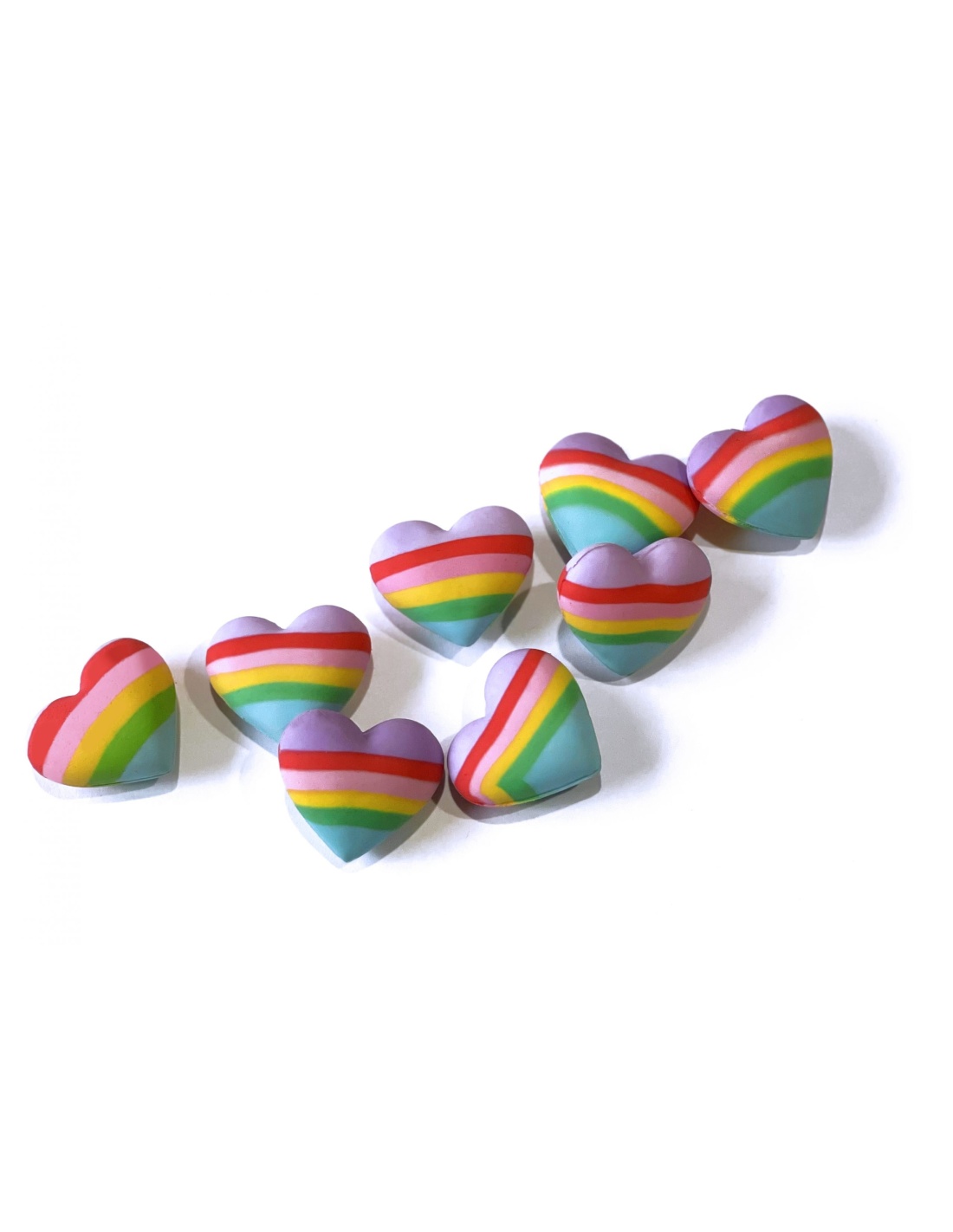 Ces gommes soooo cute rendent la correction des erreurs d'autant plus douce. Doux cœurs rayés aux couleurs de l'arc-en-ciel... et en plus avec un délicieux parfum de sucre !