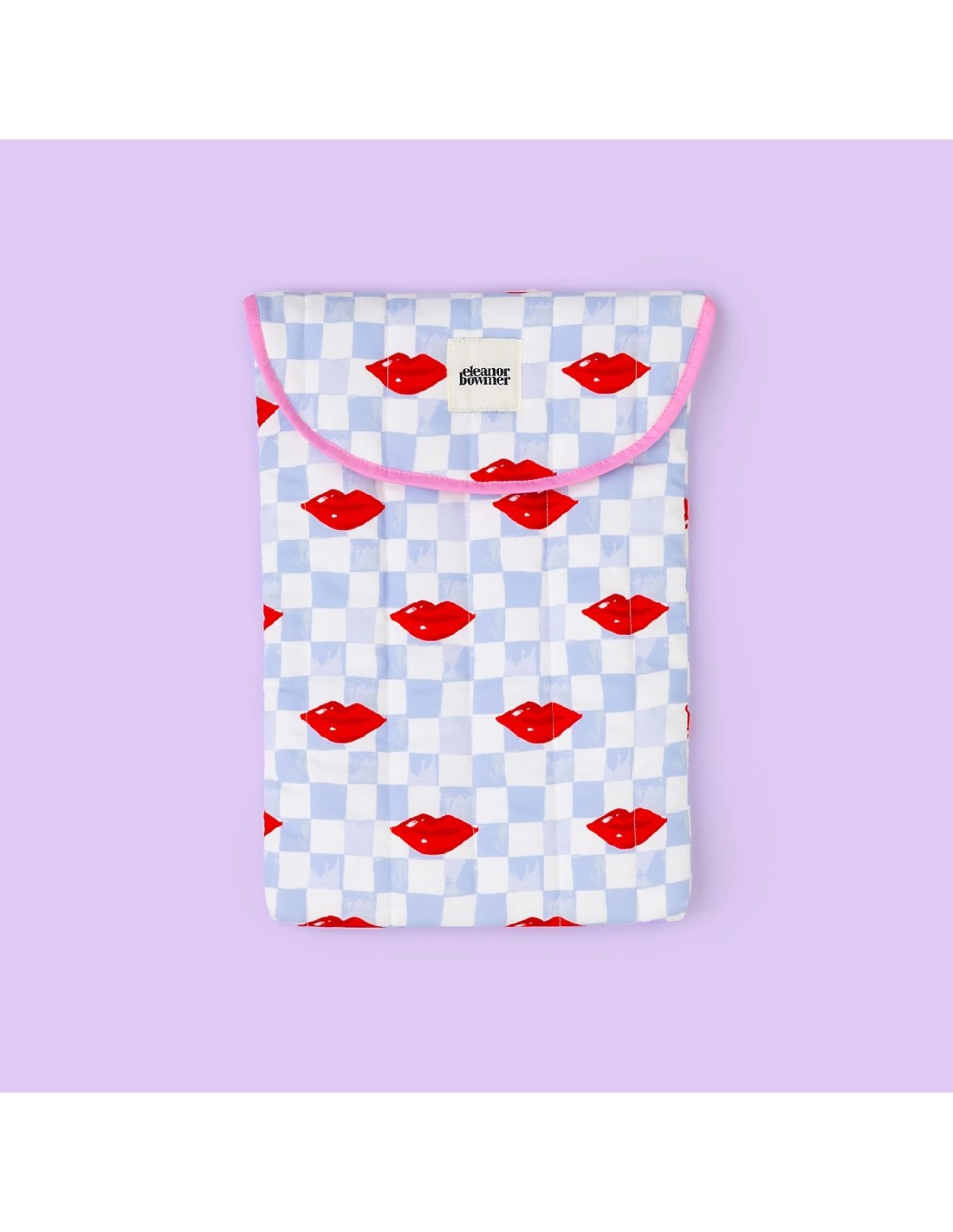 Protégez votre ordinateur portable avec style grâce à cet étui pour ordinateur portable Checkerboard Lips 16" ELEANOR BOWMER. Arborant un motif ludique à damier bleu et blanc avec des lèvres rouges et une doublure rayée ondulée rose et rouge vif, c'est le parfait mélange de plaisir et de fonctionnalité. Rembourré et amélioré, il s'associe magnifiquement à la trousse assortie pour une coordination impeccable.