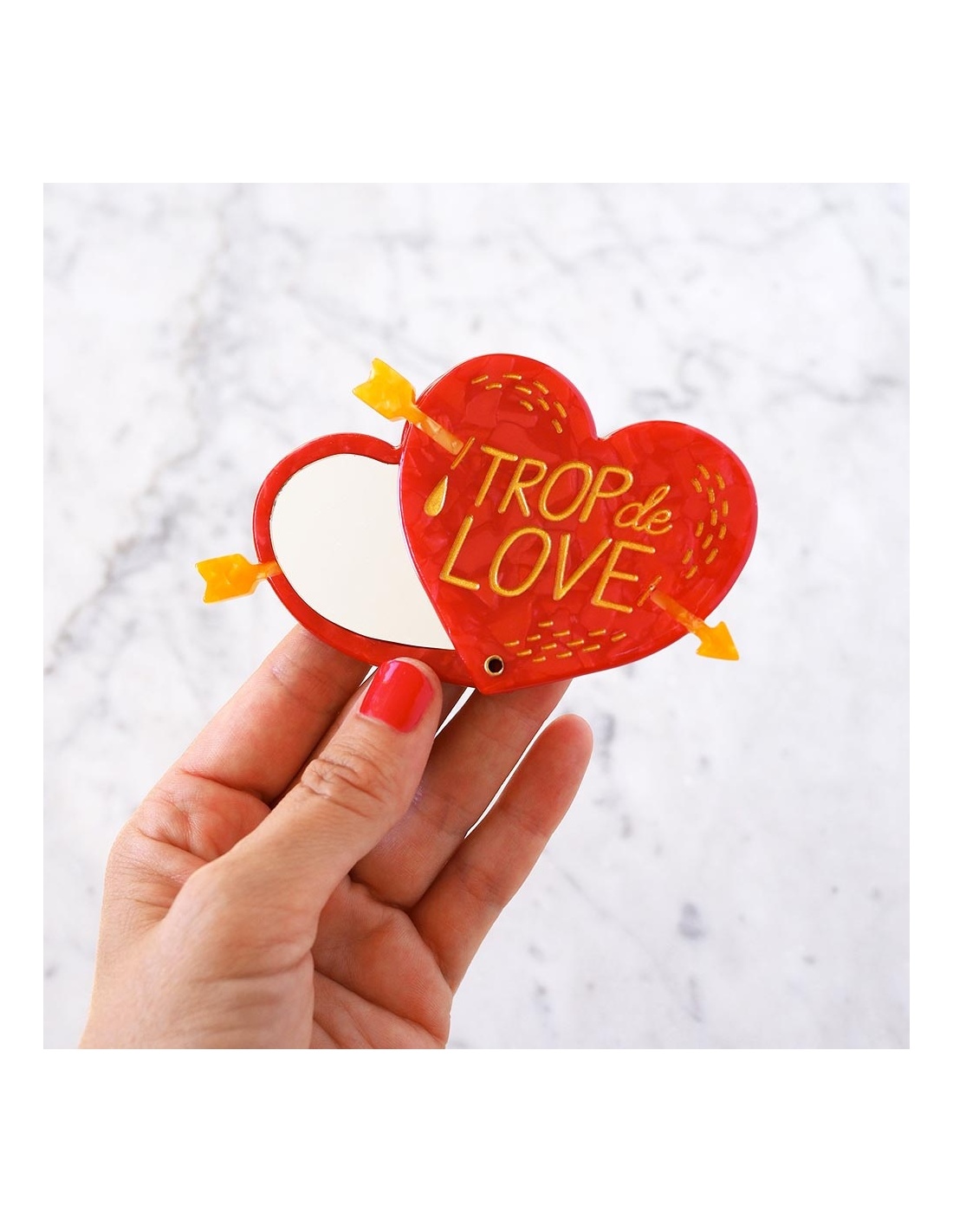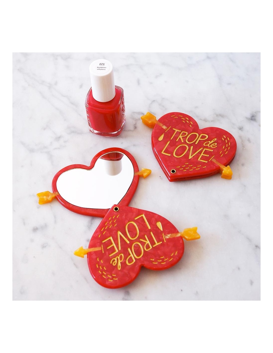 Ah, c’est beau, l’amour… Rien de tel qu’une petite déclaration de love pour adoucir ce monde de brutes. Ce miroir de poche à dégainer en toute occasion, fera de toi la porte-parole des loveuses de France et de Navarre. À transporter partout avec toi pour des petites retouches maquillage express, checker qu’un morceau de salade ne pimpe pas ton sourire, ou faire passer un message discrétos au BG en face de toi.