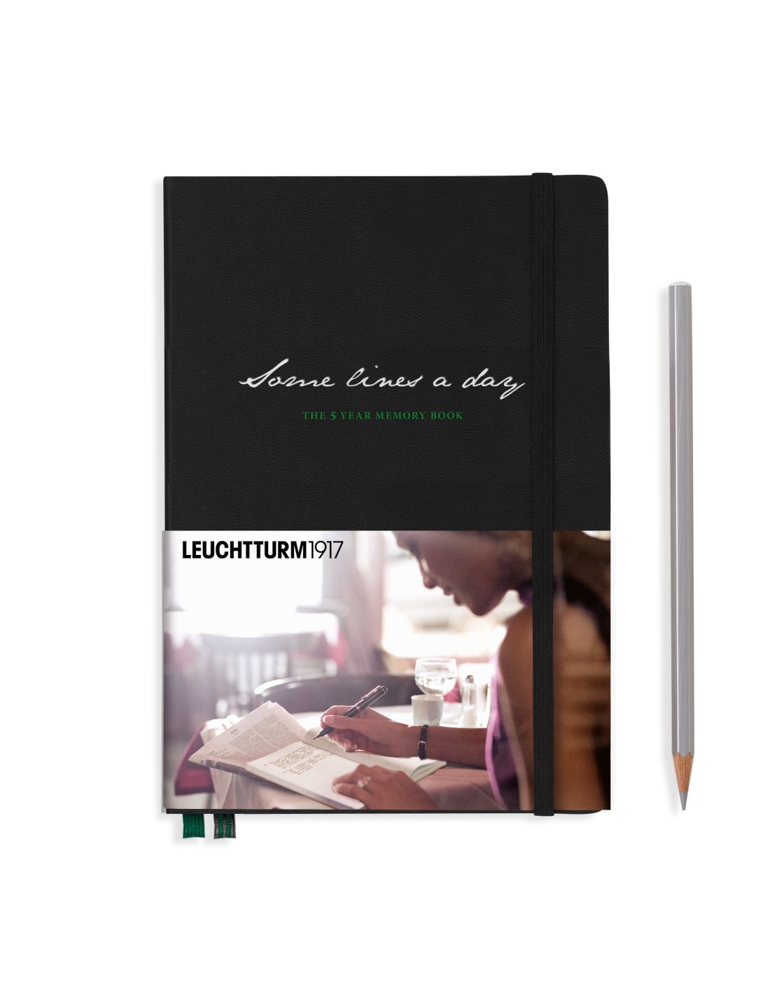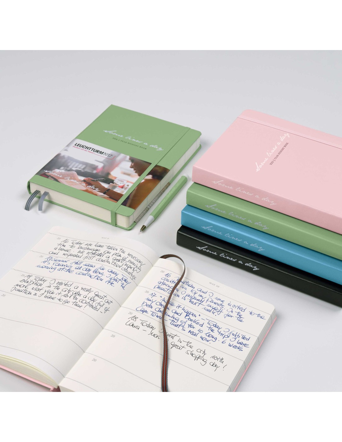 Journal LEUCHTTURM1917 sur 5 ans, couverture rigide en moleskine, présentation hebdomadaire avec cinq entrées pour le même jour civil sur chaque page (plus d'infos en bas de page)
