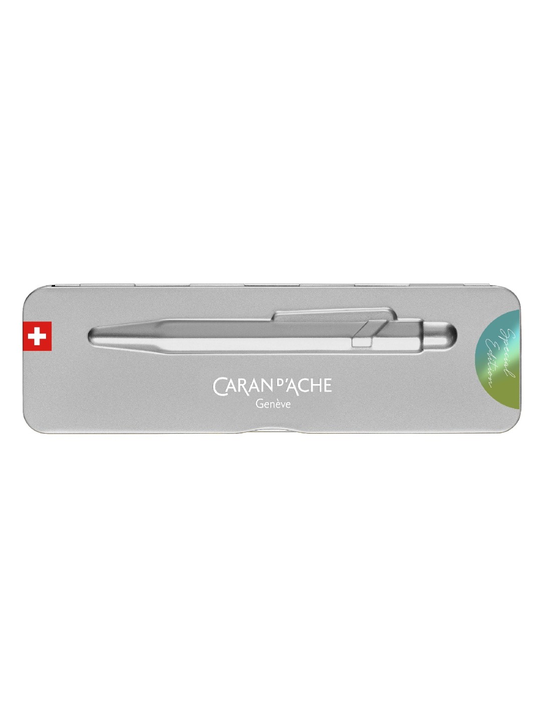 Stylo-bille CARAN D’ACHE, corps en aluminium, agrafe colorée, en édition limitée, fabriqué en Suisse (plus d’infos en bas de page)