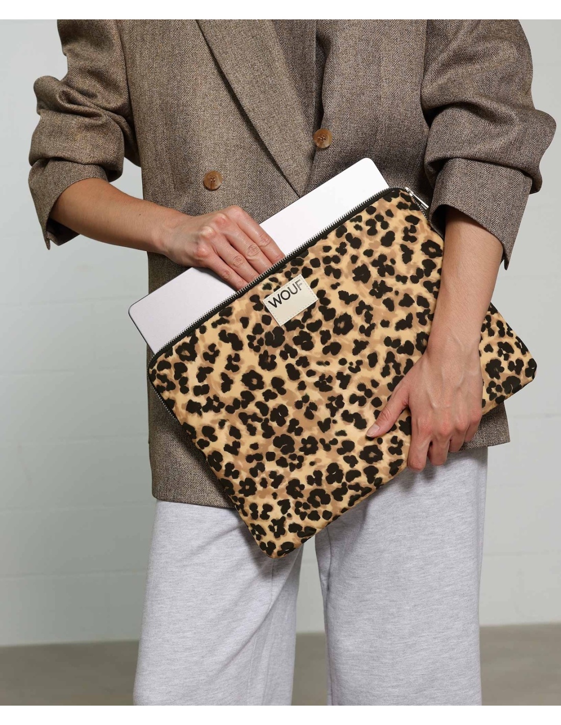 Housse WOUF pour ordinateur 13" ou 14", finition tissu Léopard, recyclé et déperlant, fabriqué en Espagne (plus d'infos en bas de page)