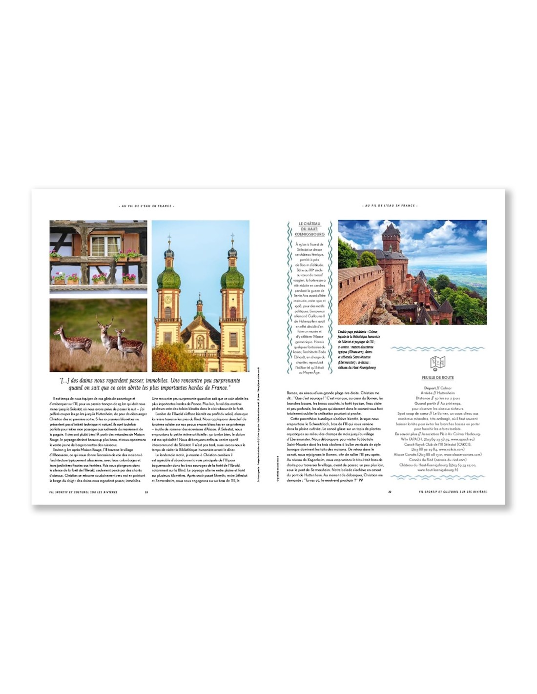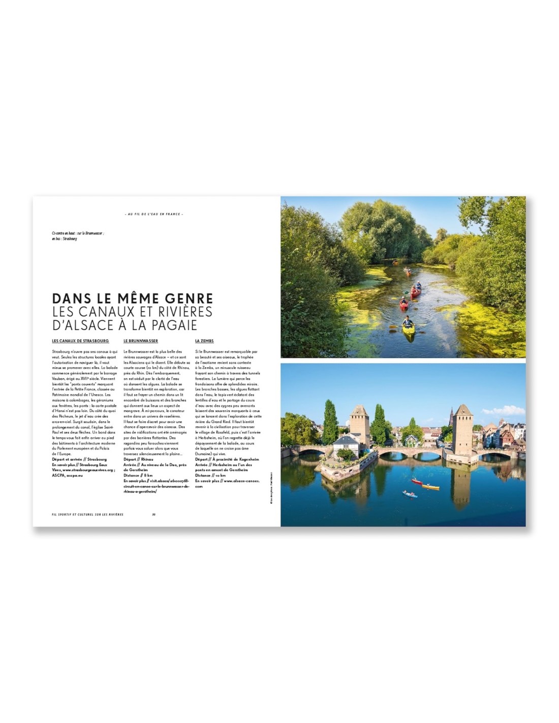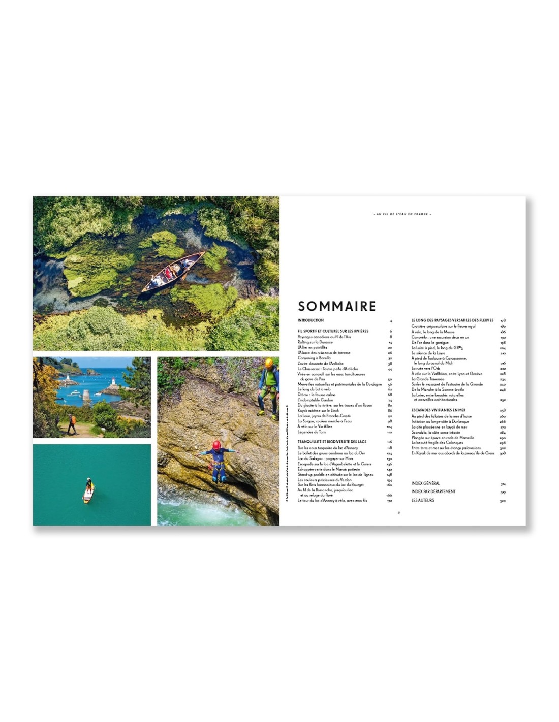 Pour chaque aventure décrite, l’ouvrage en propose 3 autres dans le même genre, composant ainsi un réservoir d’idées pour découvrir la France au fil de ses cours d’eau et de ses côtes. Amateur de slow tourisme ou de sensations fortes, chacun y trouvera son compte.