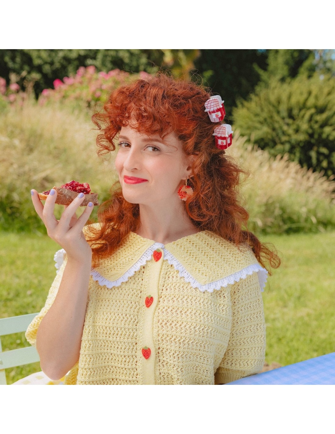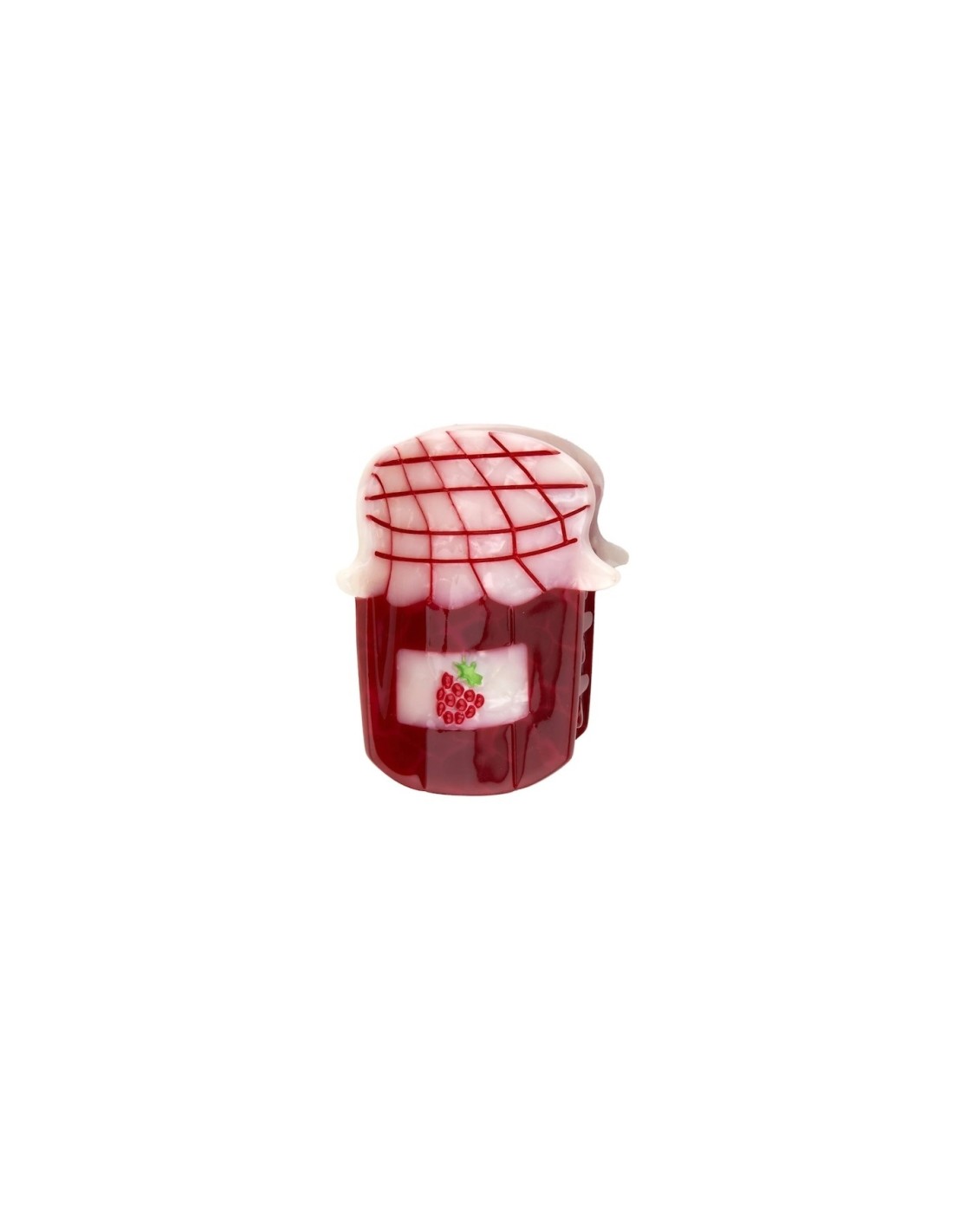 Pour des demis-queues gourmandes à souhait, on choisit cette mini pince à cheveux confiture ! Un petit pot adorable saveur framboise du jardin, qui se glisse dans tous nos sacs à main et nous coiffe en un clin d'œil.