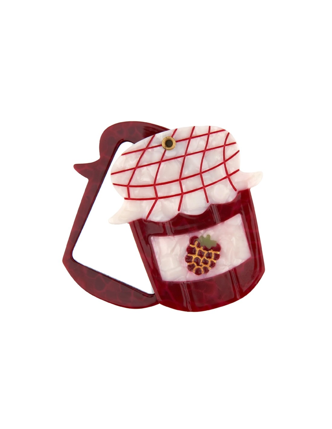 Toujours avoir un miroir sur soi, d’accord, mais en forme de pot de confiture ! On aime la nôtre, parfum framboise des bois, qui nous rappelle celles de Mamie Bernadette. Un miroir de poche original à garder sur soi en toute saison.
