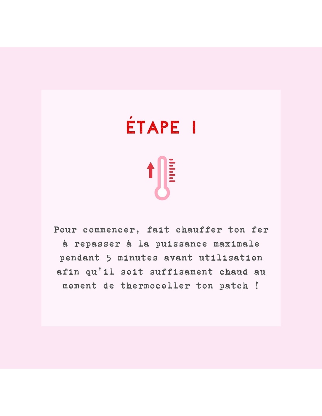 ✨ Tips : vérifier sur l'étiquette de composition / entretien du vêtement s'il est indiqué le symbole "fer à repasser barré" alors il vaut mieux éviter de thermocoller le patch. Mais ne t'inquiètes pas, sur ces matières tu peux coudre à la machine ou à la main.