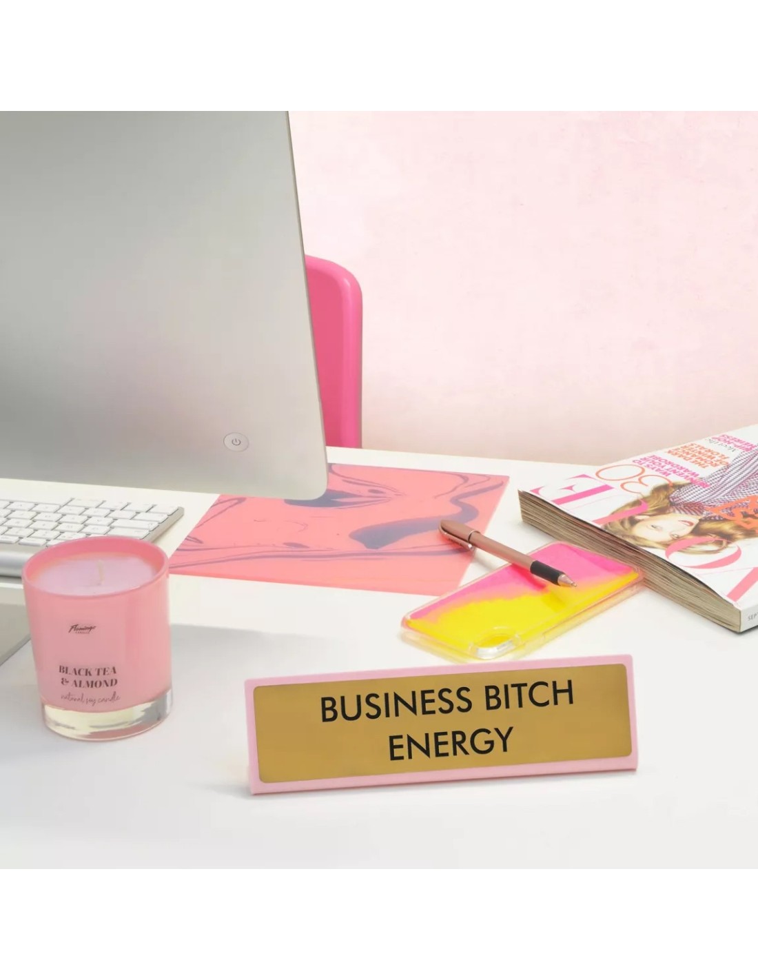 Plaque de bureau gravée Flamingo Candles