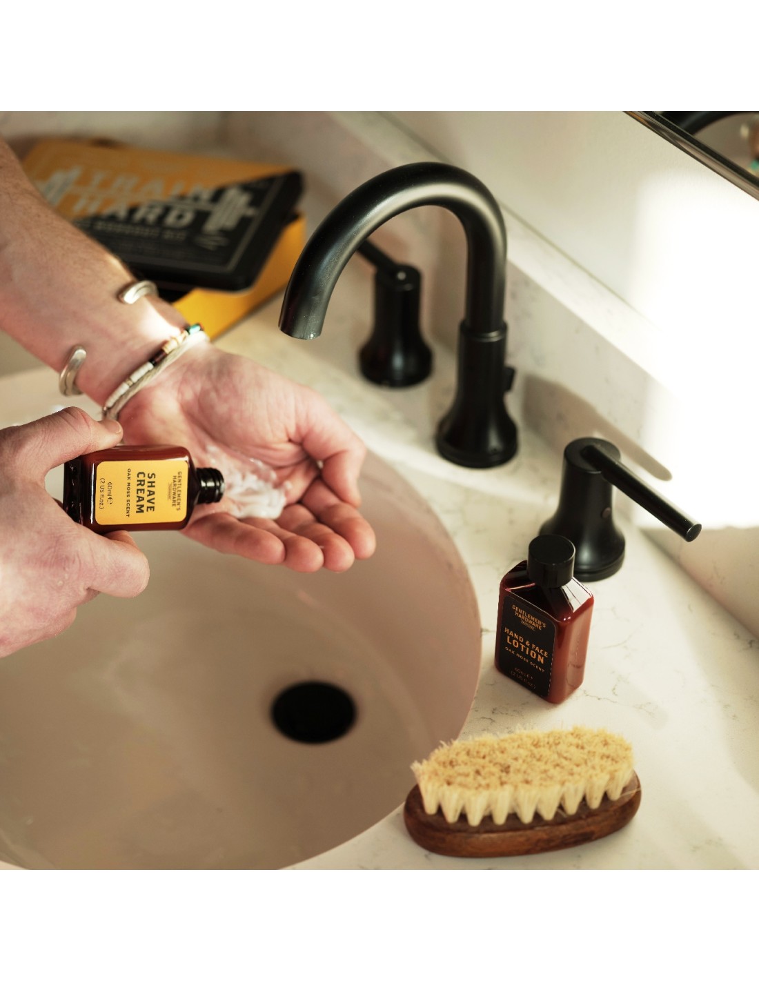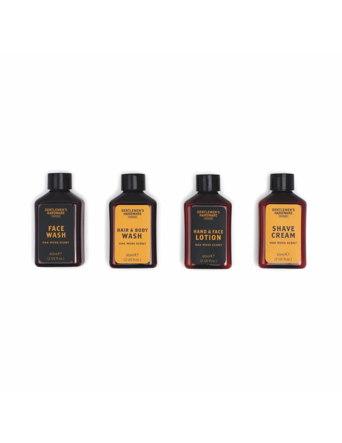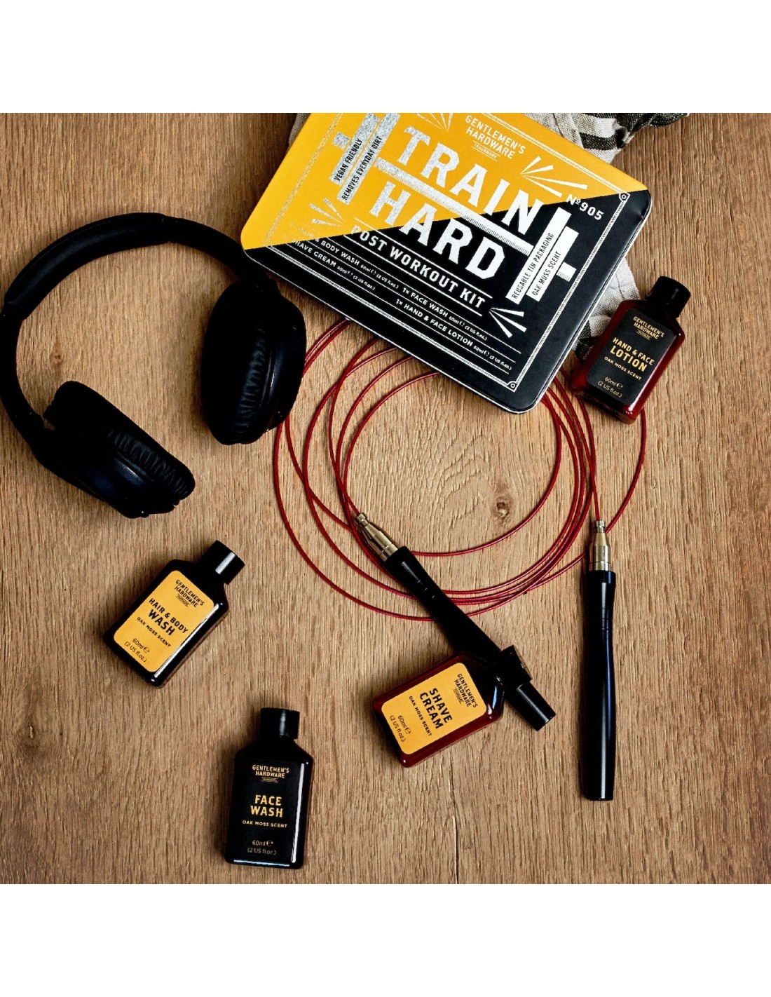 Kit de soins GENTLEMEN'S HARDWARE, pour être frais·che après sa séance, gel douche, nettoyant visage, crème à raser et crème hydratante, en boite en métal (plus d'infos en bas de page)