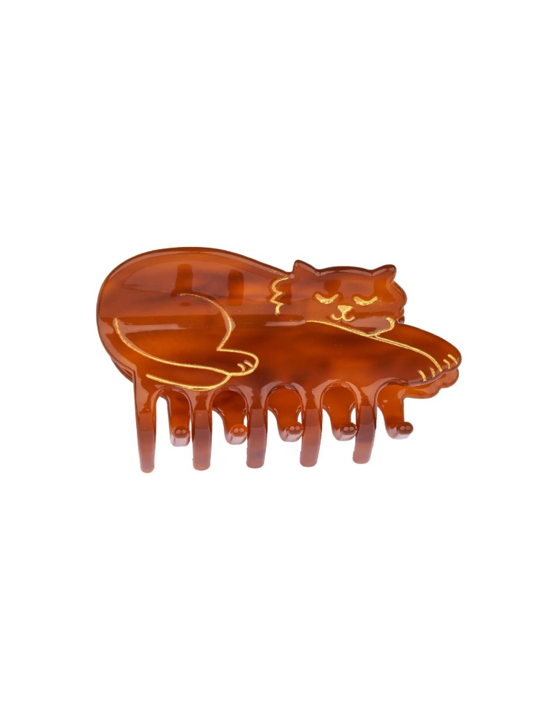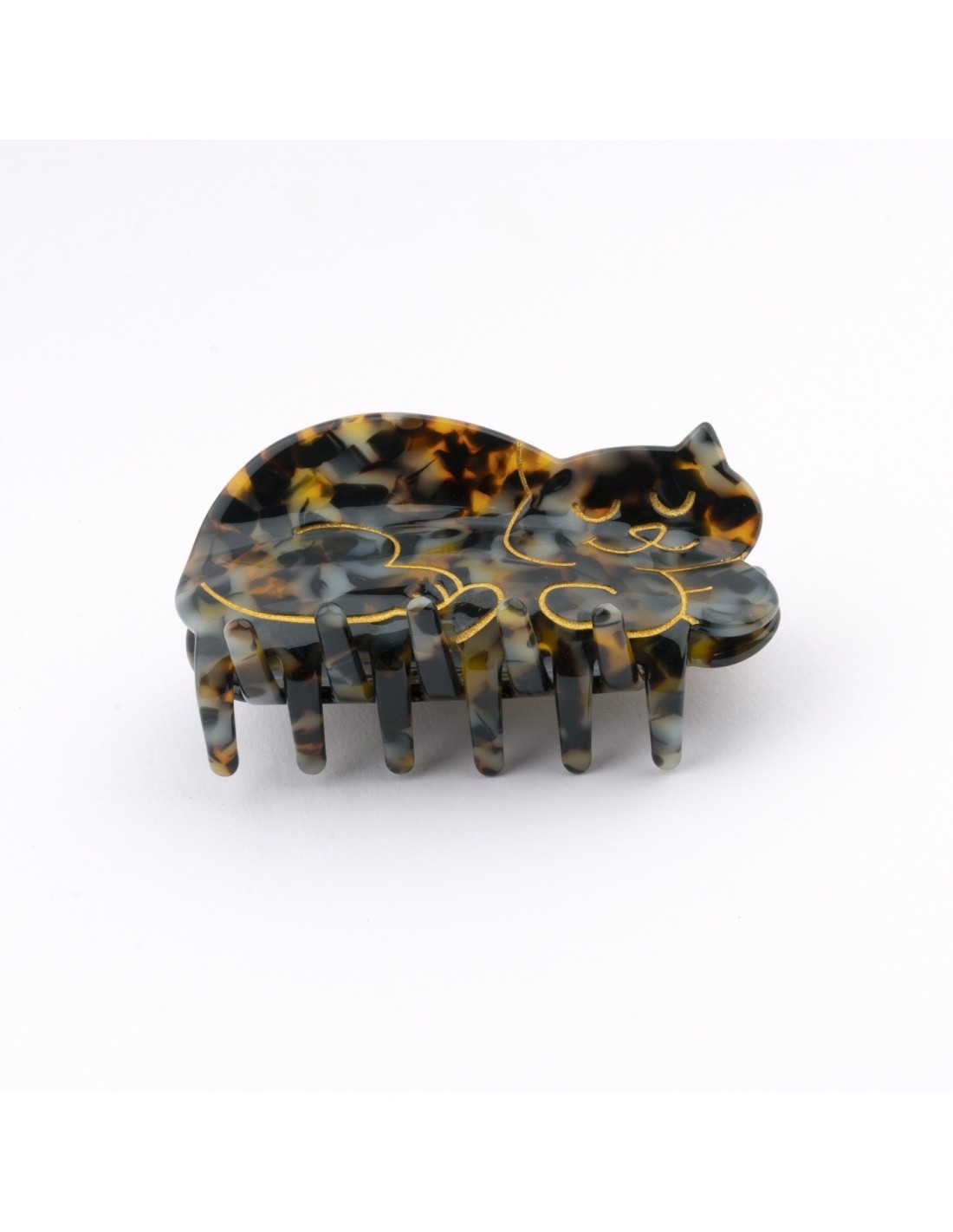 Voilà un gros chat qui a repéré de ses grands yeux verts malicieux le plus cool des jouets : un bouchon de bouteille qui traîne par terre (pendant que le gadget ultra cher que vous lui avez acheté moisit paisiblement dans un coin). Une petite danse du popotin et c’est parti pour le fameux quart de folie félin dans toute la maison ! Heureusement cette barrette noire en acétate sait se tenir, et garantit de rester en place toute la journée dans votre chevelure.