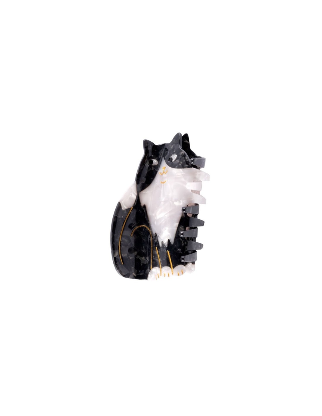 Voilà un gros chat qui a repéré de ses grands yeux verts malicieux le plus cool des jouets : un bouchon de bouteille qui traîne par terre (pendant que le gadget ultra cher que vous lui avez acheté moisit paisiblement dans un coin). Une petite danse du popotin et c’est parti pour le fameux quart de folie félin dans toute la maison ! Heureusement cette barrette noire en acétate sait se tenir, et garantit de rester en place toute la journée dans votre chevelure.