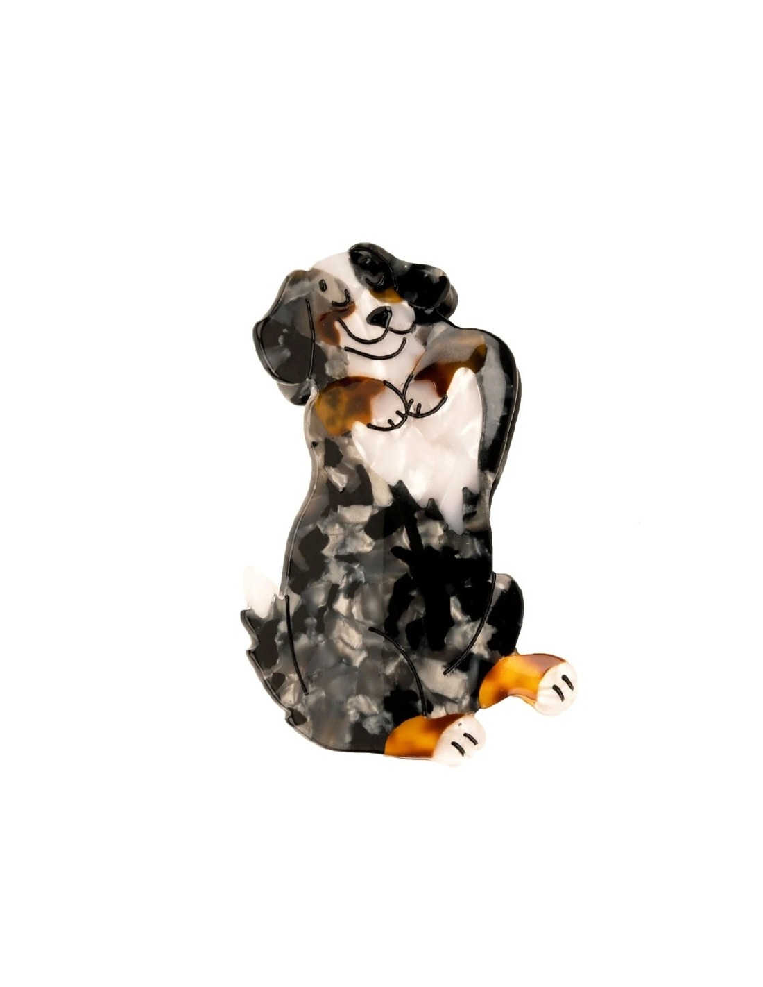 Petit Teckel qui assure la garde de votre style capillaire. Chez Coucou Suzette on adore cette race de chiens qui ressemble à une petite saucisse, alors on a imaginé l'accessoire à cheveux idéal : original, rigolo et qui se glisse facilement dans le sac à main. Le détail qu’on aime ? Sa petite moue fière avec sa langue qui pendouille. Cette barrette écaille de tortue est faite à partir d'acetate de cellulose recyclée & biodégradable (eco-friendly).
