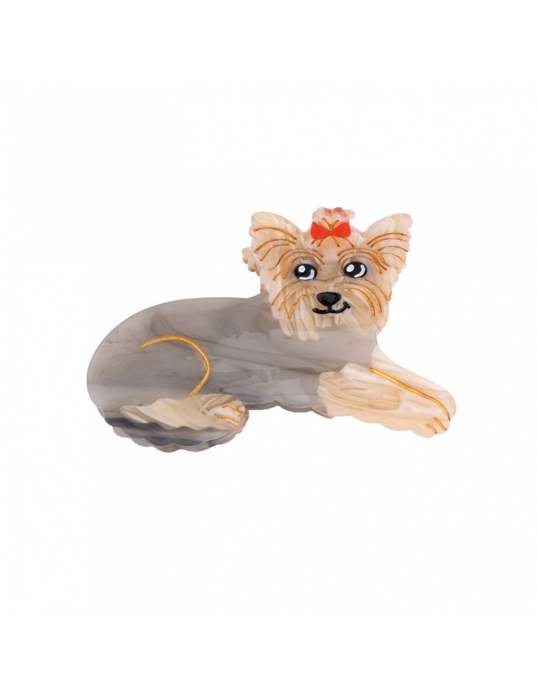 Petit Teckel qui assure la garde de votre style capillaire. Chez Coucou Suzette on adore cette race de chiens qui ressemble à une petite saucisse, alors on a imaginé l'accessoire à cheveux idéal : original, rigolo et qui se glisse facilement dans le sac à main. Le détail qu’on aime ? Sa petite moue fière avec sa langue qui pendouille. Cette barrette écaille de tortue est faite à partir d'acetate de cellulose recyclée & biodégradable (eco-friendly).