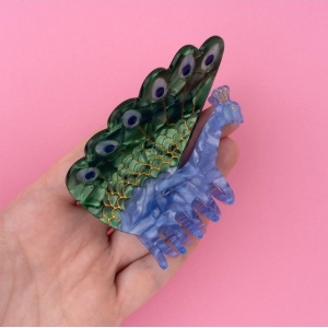 Une sublime pince à cheveux colorée en forme de paon, de perruche ou de toucan... Dame Nature n’a pas chômé quand elle a imaginé ces animaux ! Dans des tons bleus roi et verts émeraude nacrés ou jaune vif, avec ses jolis détails : encre dorée, paillettes ou strass, chacun à sa particularité ! On s'est senties très inspirées aussi avec la création de cet accessoire unique en son genre.