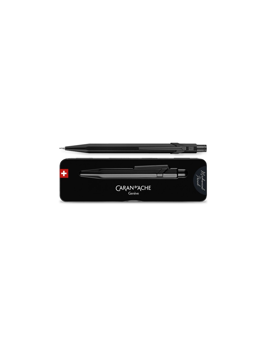 Porte-mine CARAN D’ACHE, mine 0.7 mm, corps en aluminium, agrafe plaqué or ou noir mat, fabriqué en Suisse (plus d’infos en bas de page)