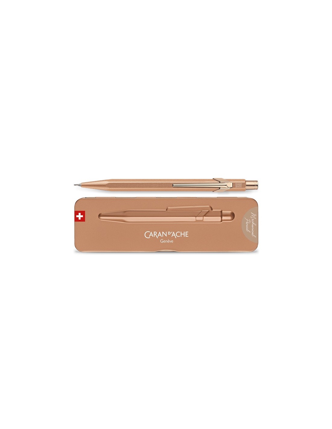 Porte-mine CARAN D’ACHE, mine 0.7 mm, corps en aluminium, agrafe plaqué or ou noir mat, fabriqué en Suisse (plus d’infos en bas de page)