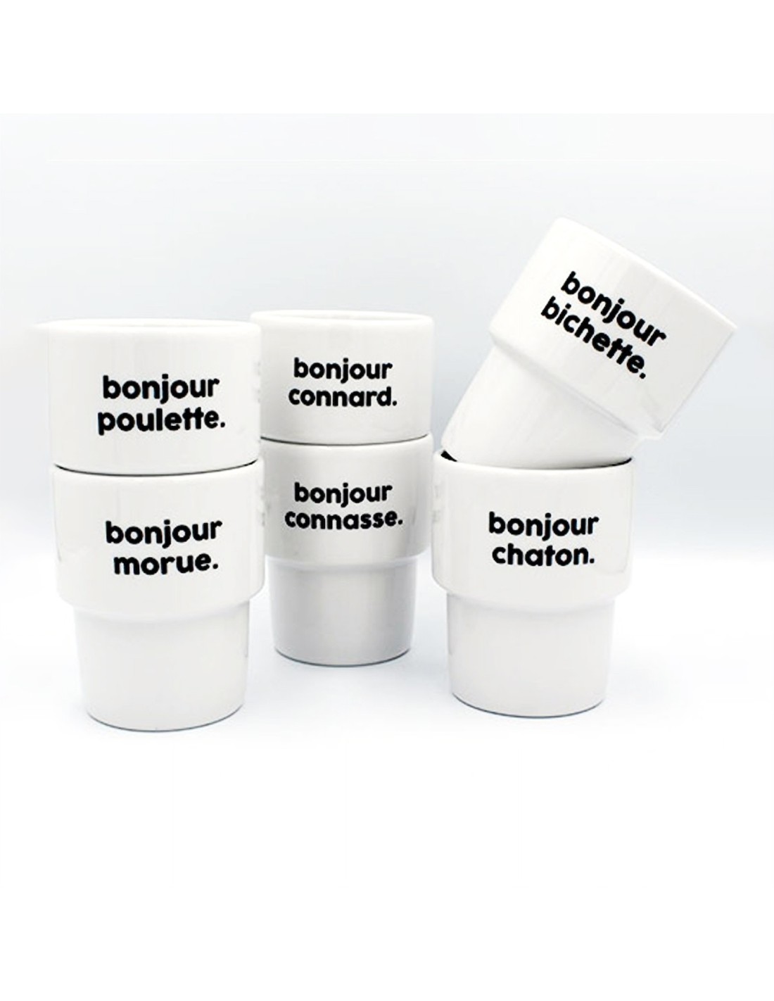 Qui aime bien châtie bien... Alors voilà le gobelet idéal pour les êtres qui vous sont chers. Empilables, en porcelaine robuste, ils peuvent aussi bien être utilisés au bureau comme pot à crayon que comme tasse à café ou à thé, c'est à vous de voir ;)