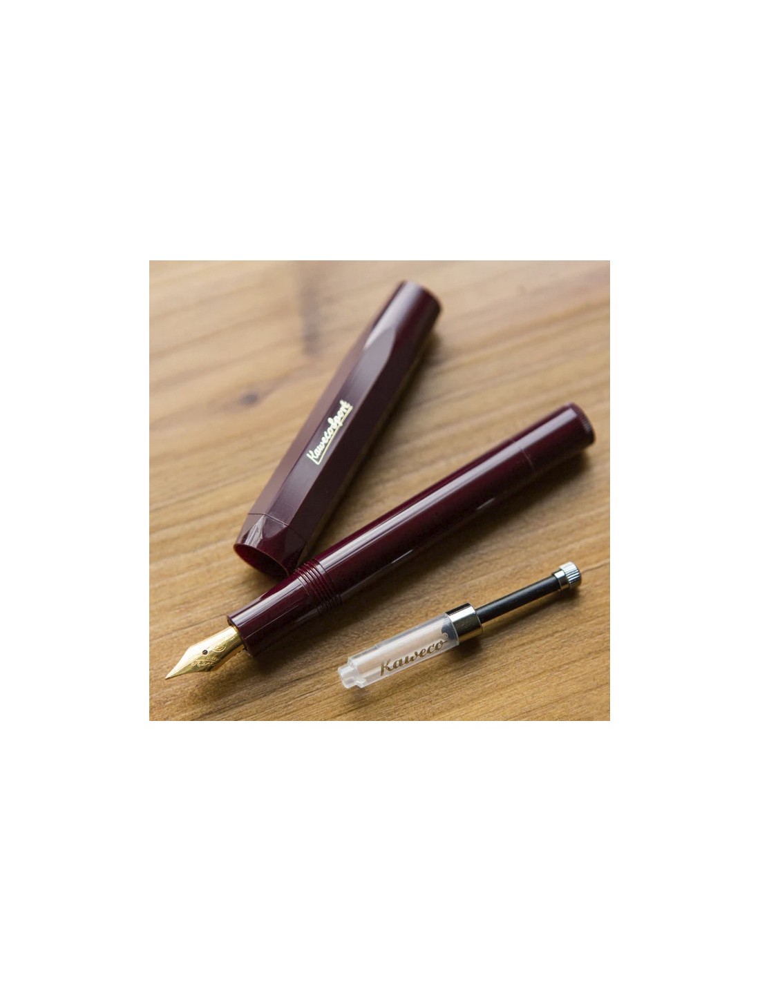 Les convertisseur standards Kaweco s’adaptent à tous les stylos qui acceptent d'habitude les cartouches internationales. Au lieu de la cartouche d’encre, insérez le convertisseur dans le baril du stylo. Pour le remplir l’encre, trempez ensuite la plume complètement dans l'encre et actionnez le piston.