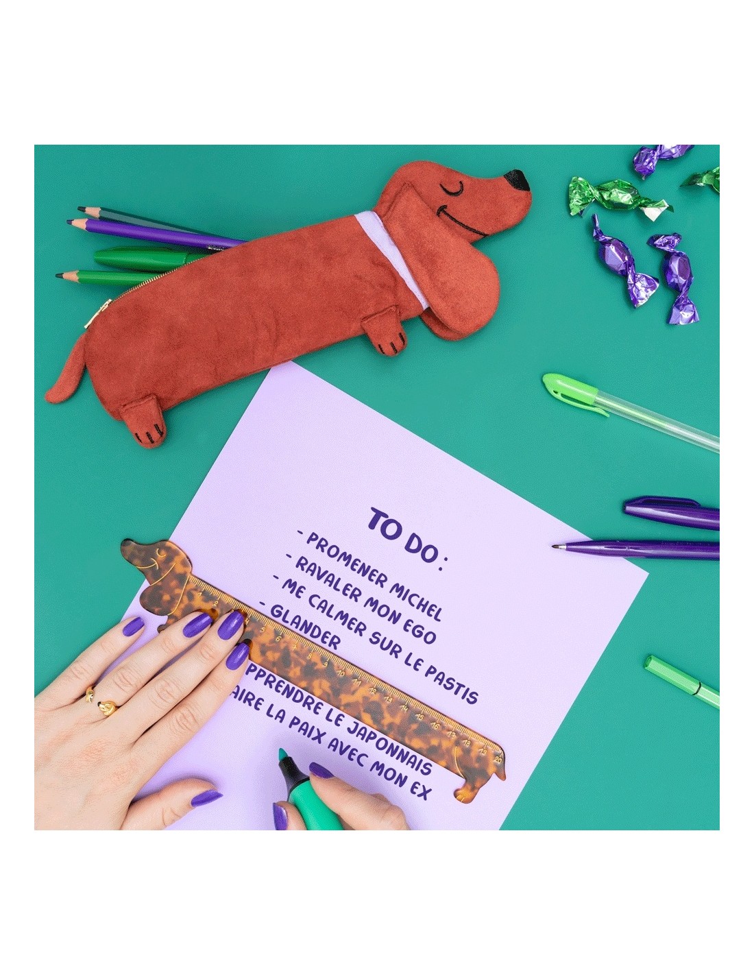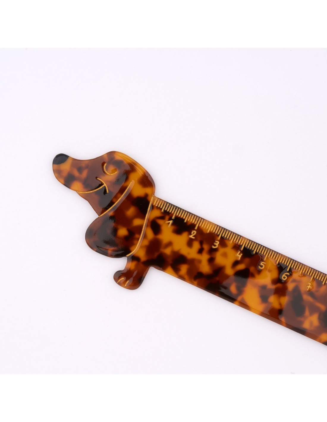 Le Teckel, un chien étrangement long, et donc idéal pour être décliné en règle n’est-ce pas ?! De notre côté ça nous est apparu évident, alors le voici sous forme de double décimètre de qualité ! Cette élégante règle Teckel est faite en acétate, pour un effet “écaille de tortue” délicieusement rétro. Avec ses détails dorés et ses chiffres dessinés à la main, on craque pour ce petit bijou de bureau !