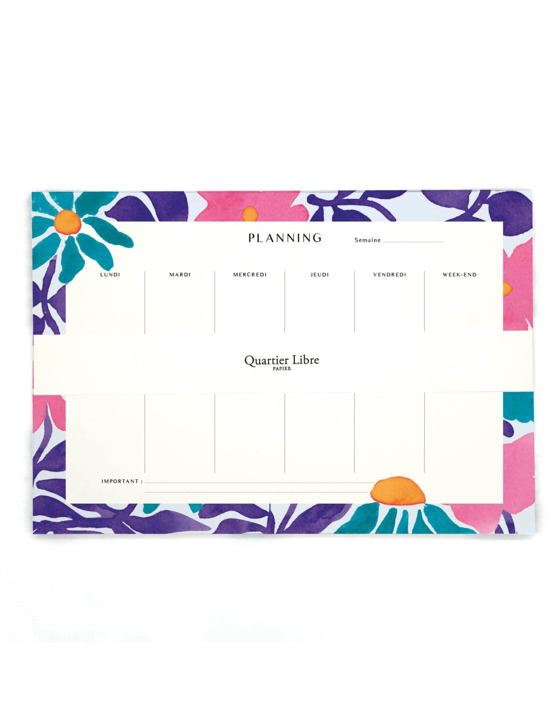 Semainier QUARTIER LIBRE PAPIER avec planning hebdomadaire, fabriqué en France (plus d'infos en bas de page)