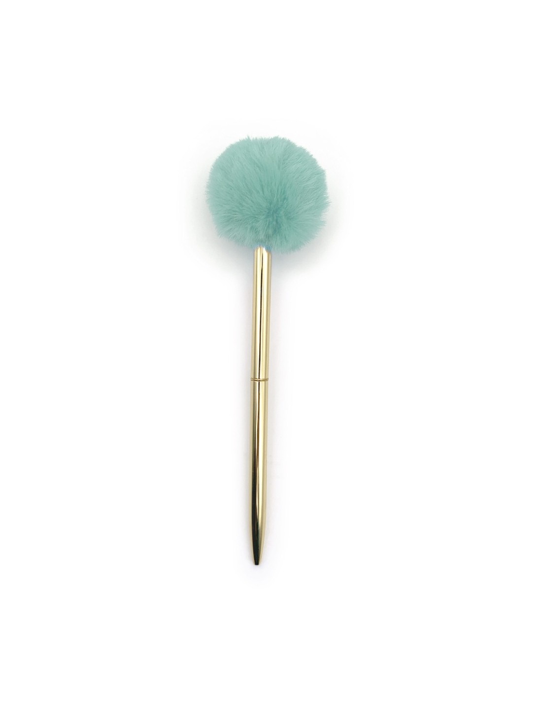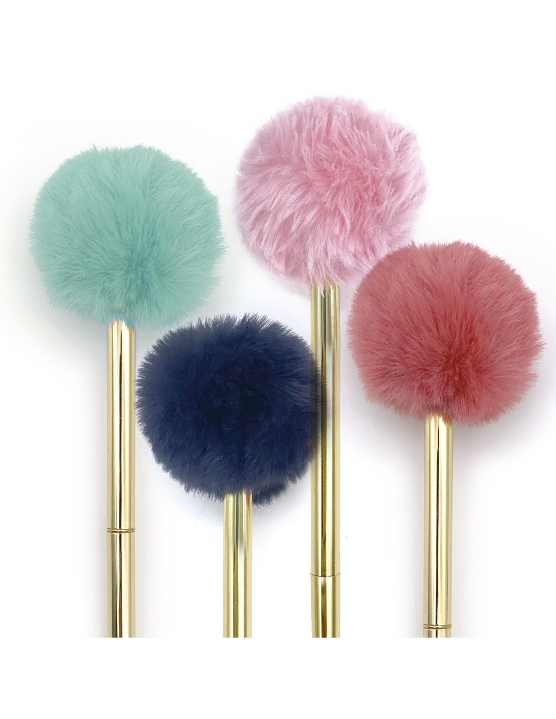 On adore ces pompons extra doux, leurs belles couleurs sur ce stylos doré en métal.