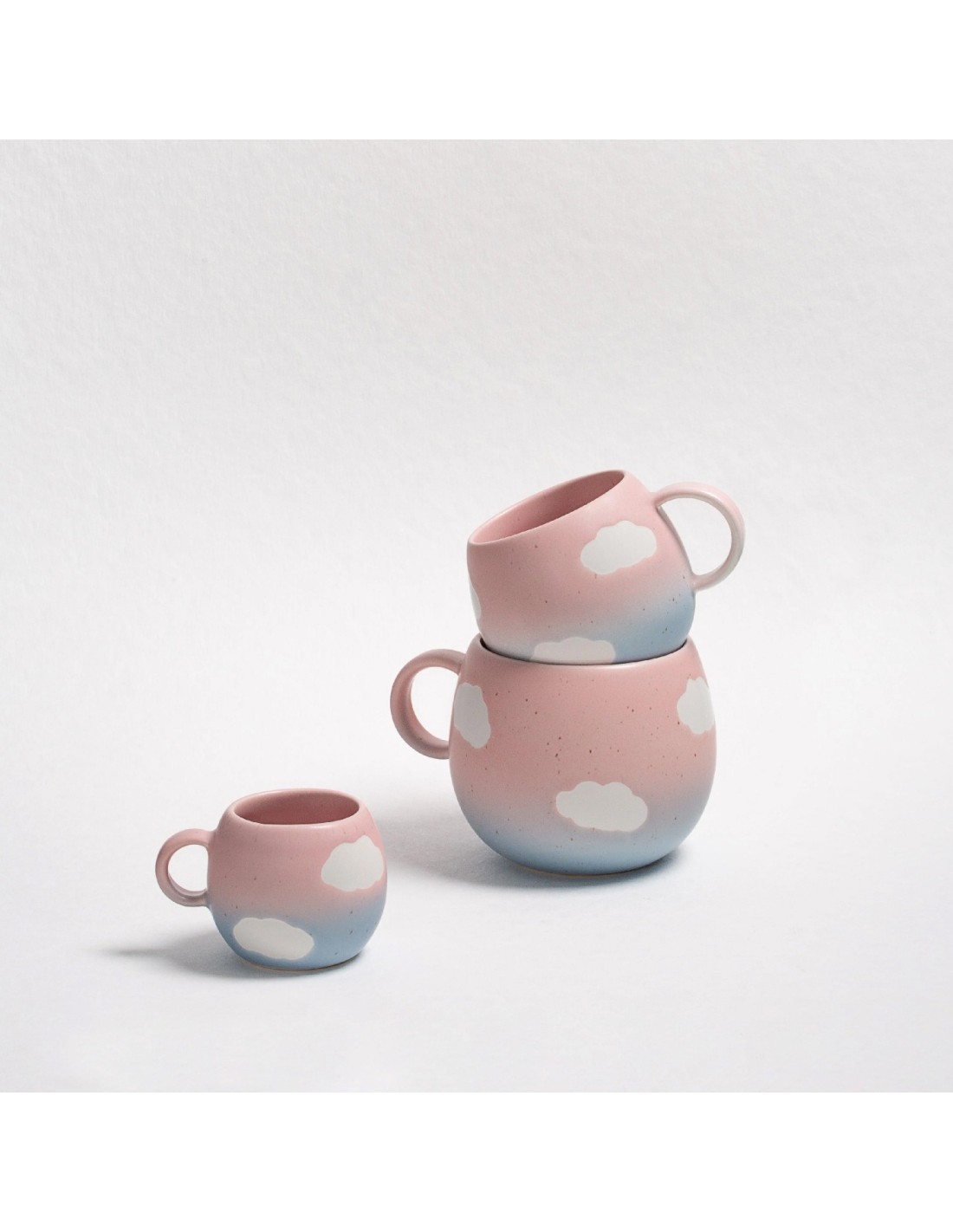 Il y a quelque chose dans le Ciel et les Nuages qui m'apporte joie et sérénité. J'ai toujours désiré une tasse nuage pour "tenir le ciel dans mes mains." Nous avons soigneusement choisi une finition Rose Satiné—ni trop brillante ni trop mate—tandis que les Nuages portent un éclat subtil.