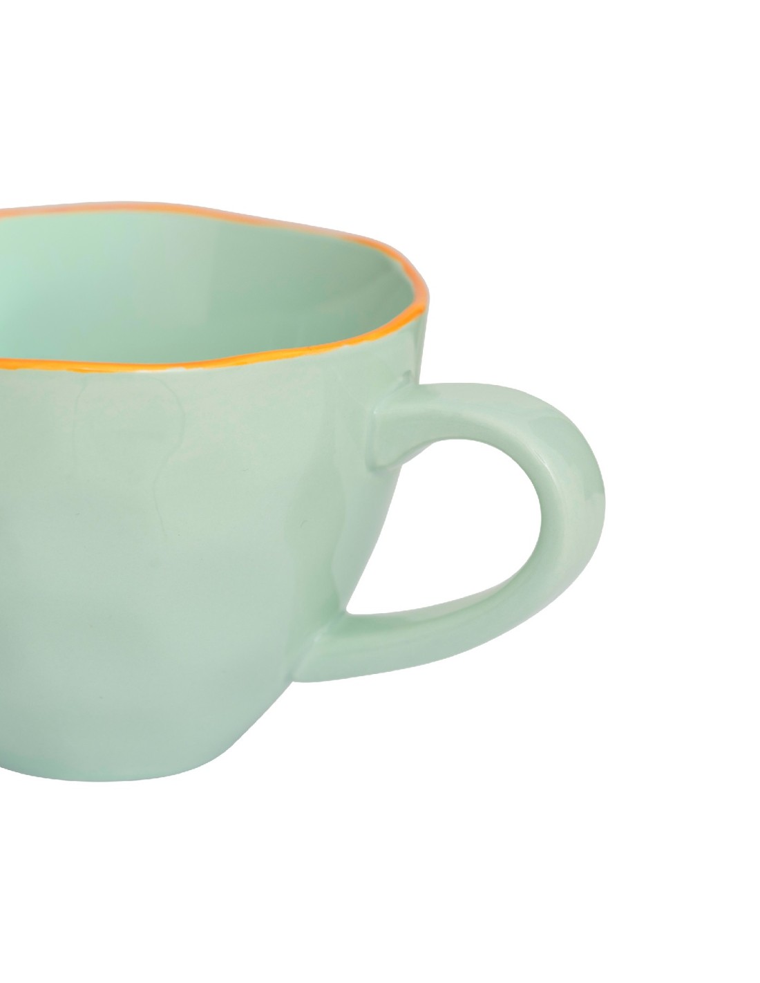 Issue de la collection Good Morning, cette tasse à cappuccino en céladon, ornée d'un liseré peint à la main, apporte une touche de gaieté à votre table. Parfaitement adaptée au cappuccino ou au thé, elle invite à la détente et au bien-être au quotidien. Un objet de vaisselle joyeux qui transforme chaque gorgée en un moment privilégié.