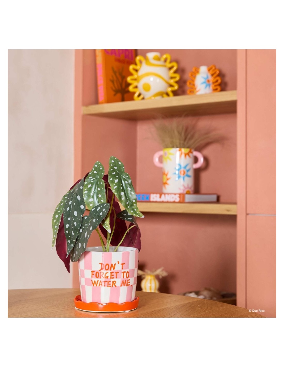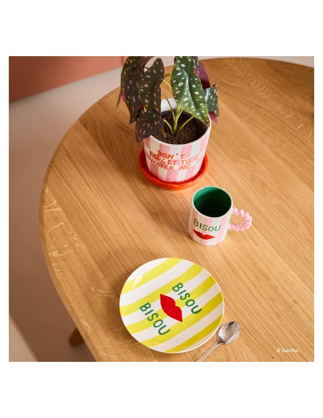 Pot de fleur en céramique QUE RICO, vendu avec sa coupelle, peint à la main (plus d'infos en bas de page)