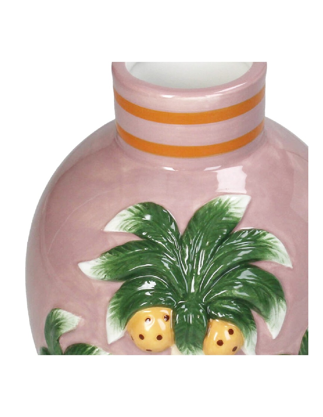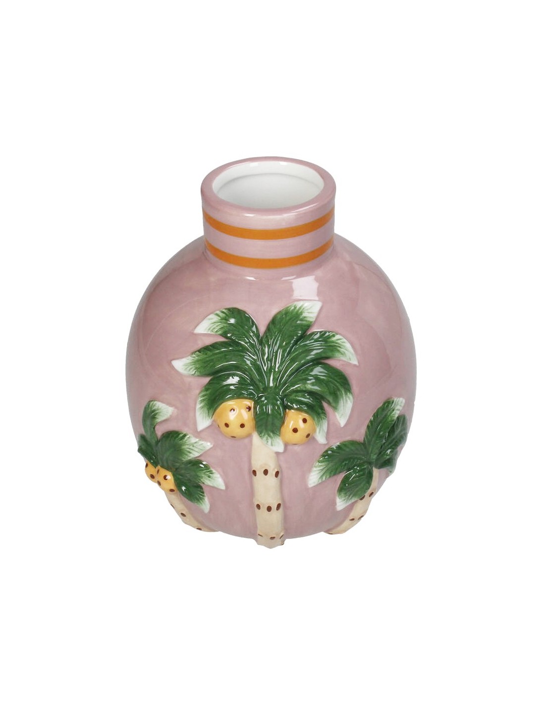Ce vase en céramique avec son palmier sur fond rose est un objet décoratif charmant au look estival et ludique. La couleur douce et le motif botanique offrent un look frais et contemporain. Le vase est idéal pour les petits bouquets de fleur et même vide comme un objet déco.