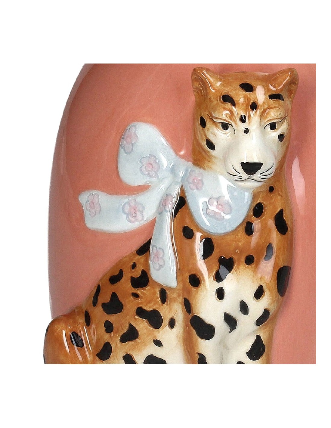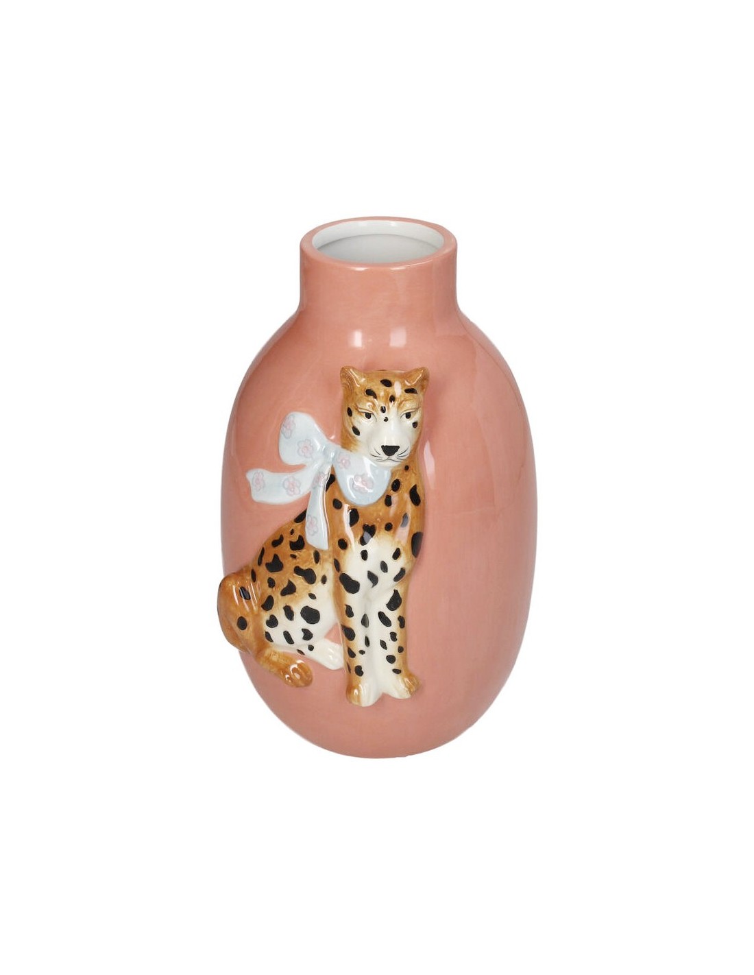 Ce vase en céramqie avec son grand léopard combine l’espièglerie avec un look doux et élégant. Le motif animal donne du caractère au vase, tandis que la couleur claire apporte équilibre et accessibilité. Le vase est adapté pour les grands bouquets de fleurs ou comme un objet déco.