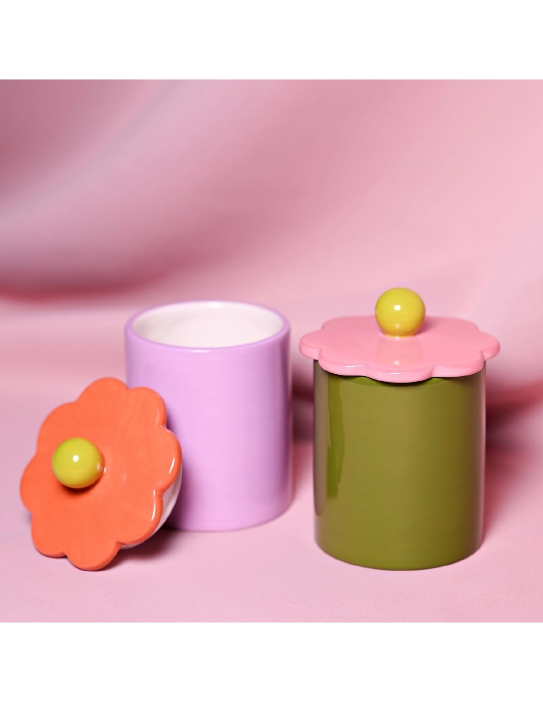 Ajoutez une touche de couleur à votre espace avec ces 2 bocaux de rangement à fleurs Raspberry Blossom. Ces contenants vibrants, avec leurs couvercles en forme de fleurs fantaisistes, sont un ajout joyeux à n'importe quelle pièce.