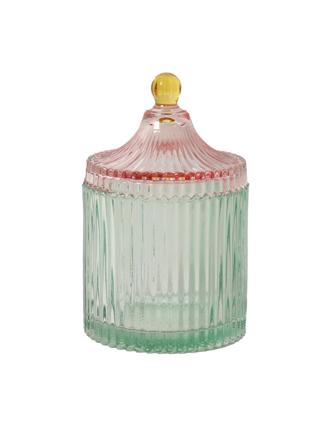 Une boite haute en verre toute mignonne qui trouvera sa place partout : au bureau pour ranger tous ces trombones et câbles qui trainent, dans la cuisine pour des sachets de thé, à la salle de bain pour des cotons...